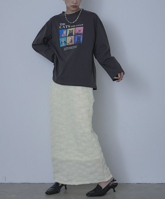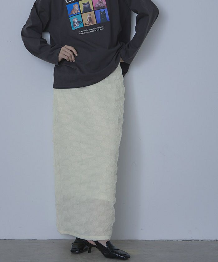 ・表面の凸凹感がかわいいジャガード素材のスカート