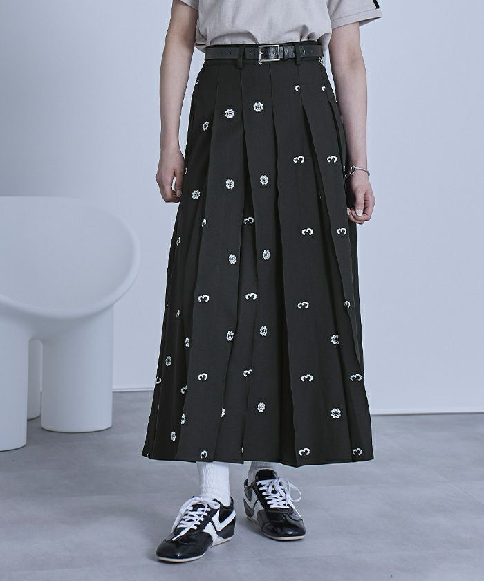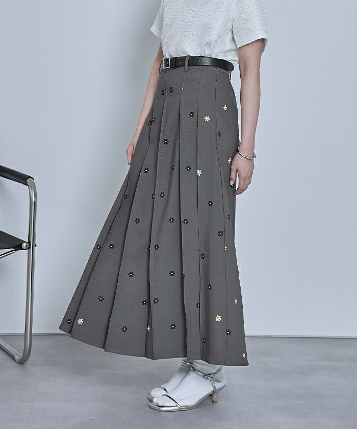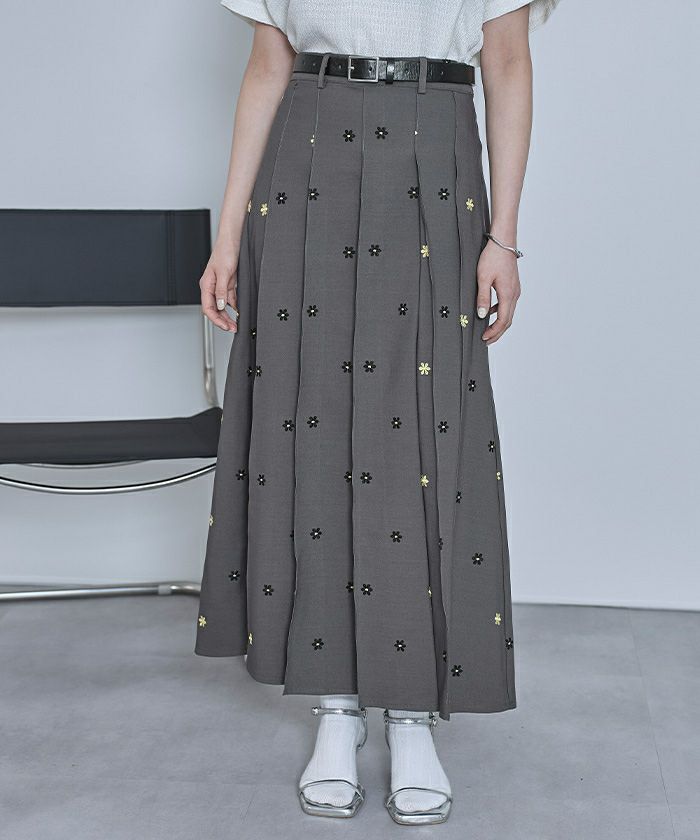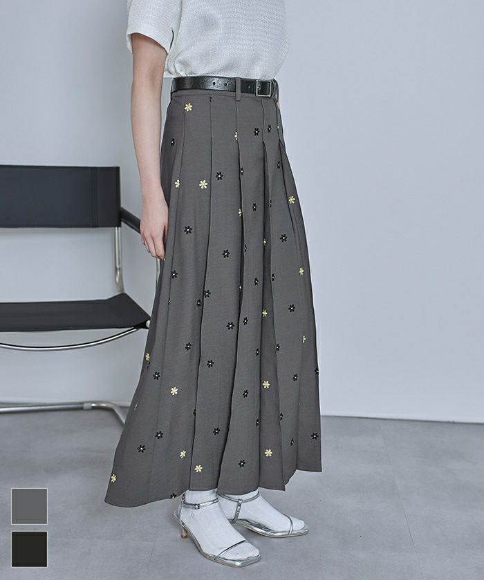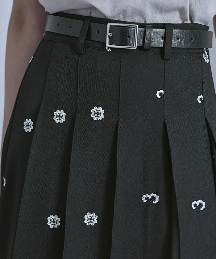 ・レトロな雰囲気の花柄刺繍が可愛いスカート