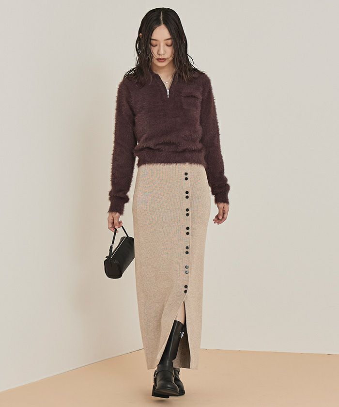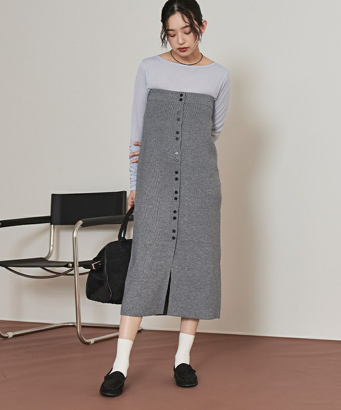 ボタンデザインニットスカート
