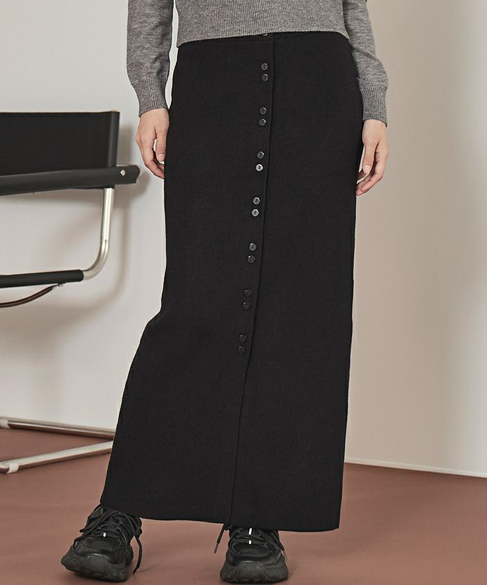 ・トレンドの2連ボタンのニットスカート