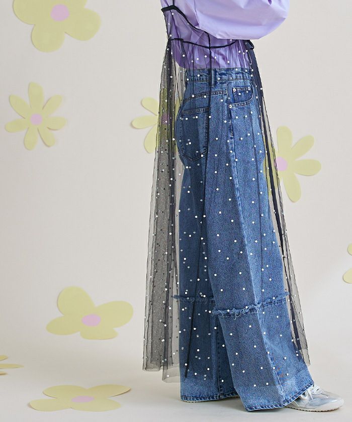 前後2wayパール付きチュールワンピース
