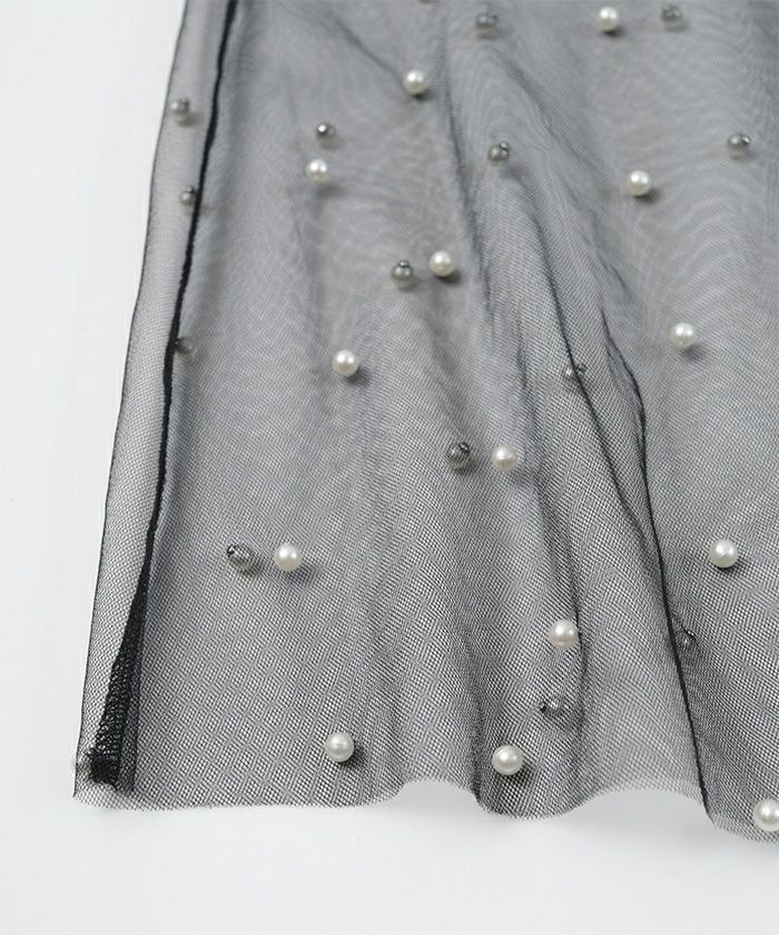 ・全体にパールを施したチュールワンピース。