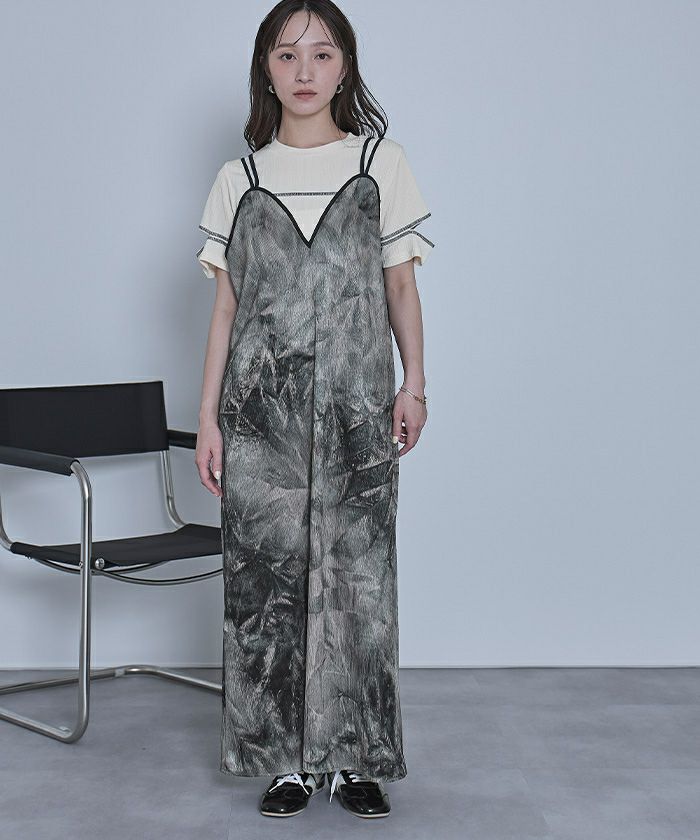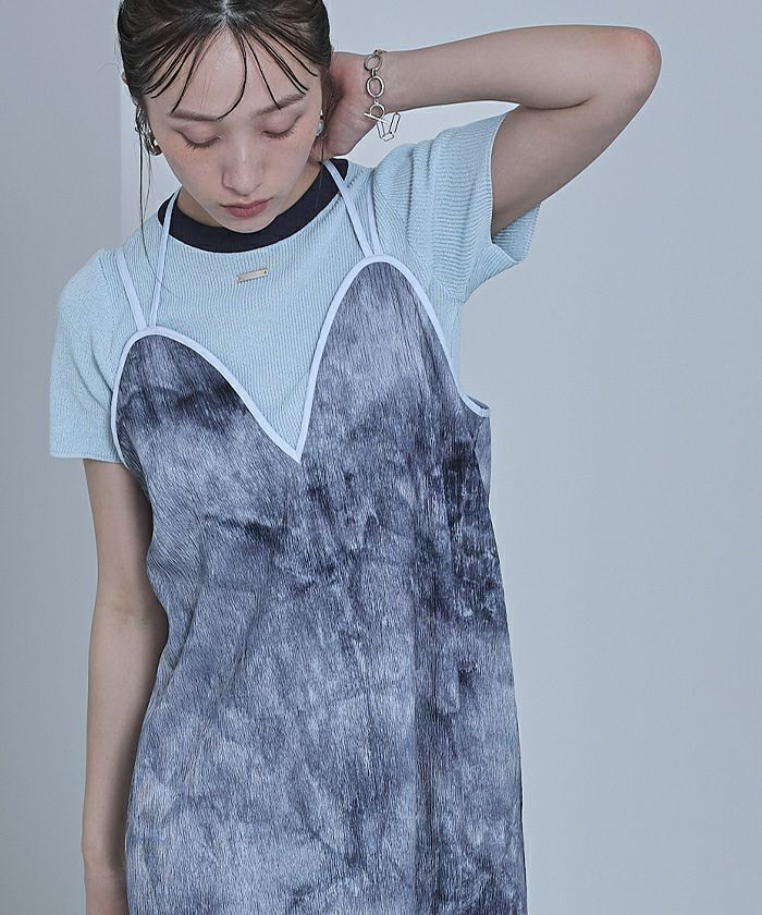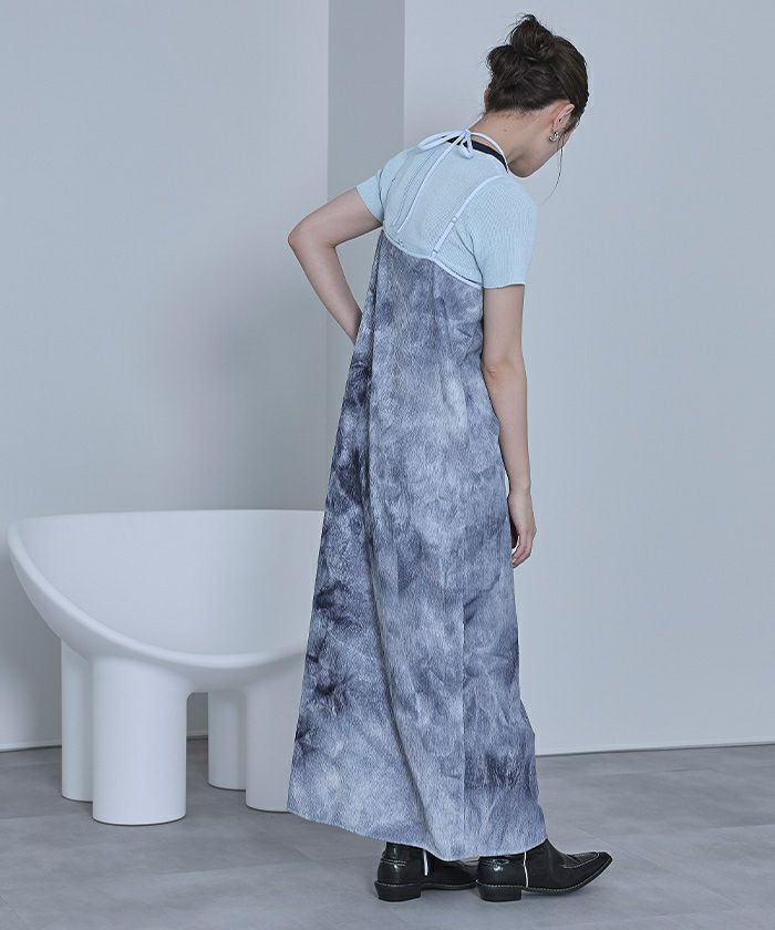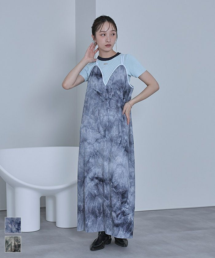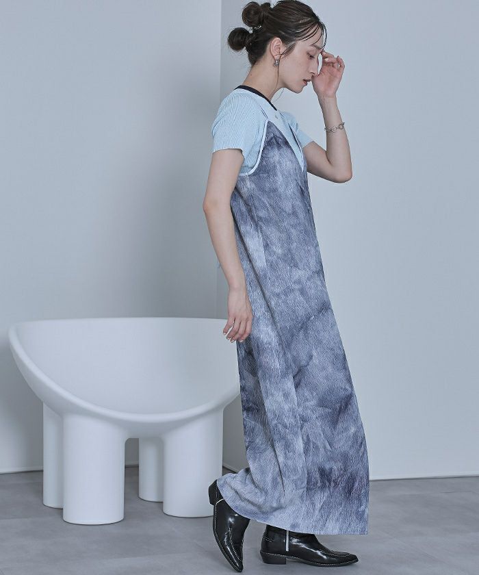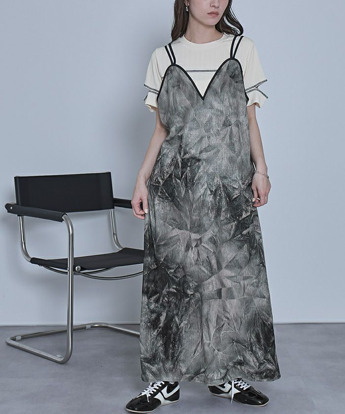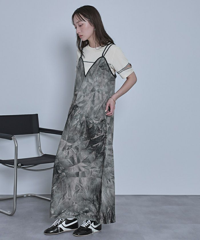 ・大胆なムラ染めプリントが存在感のあるワンピース