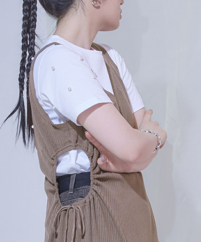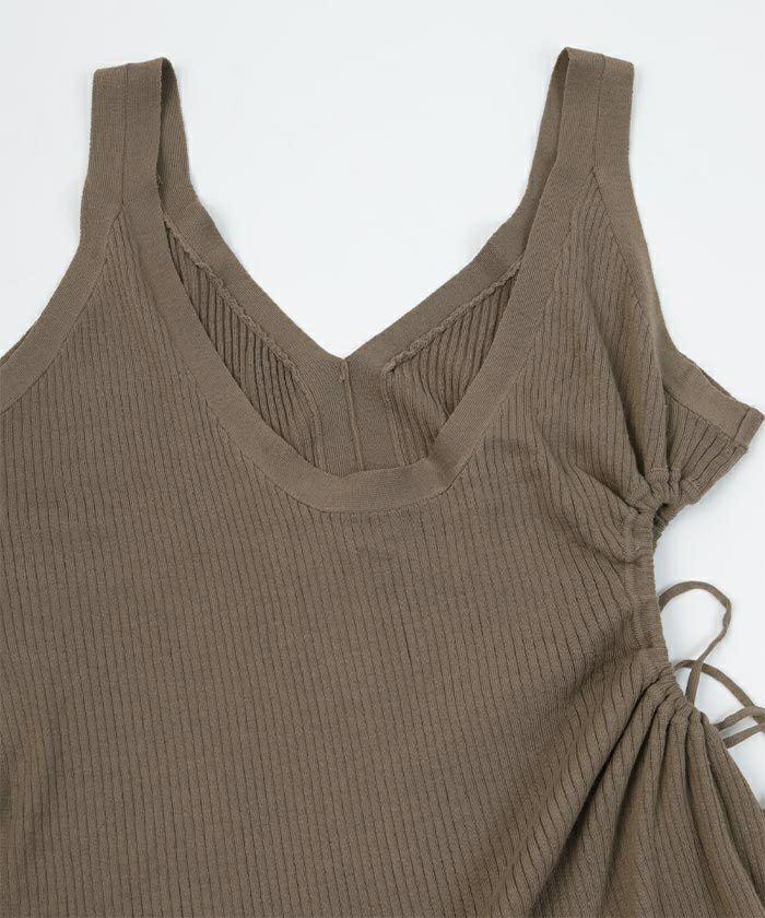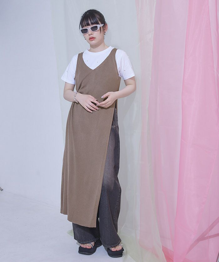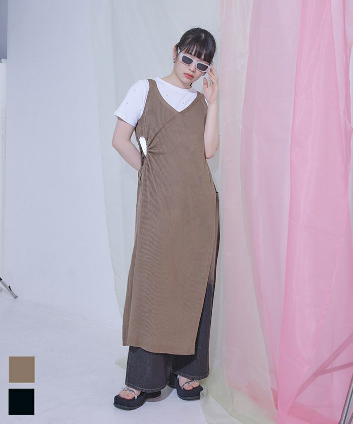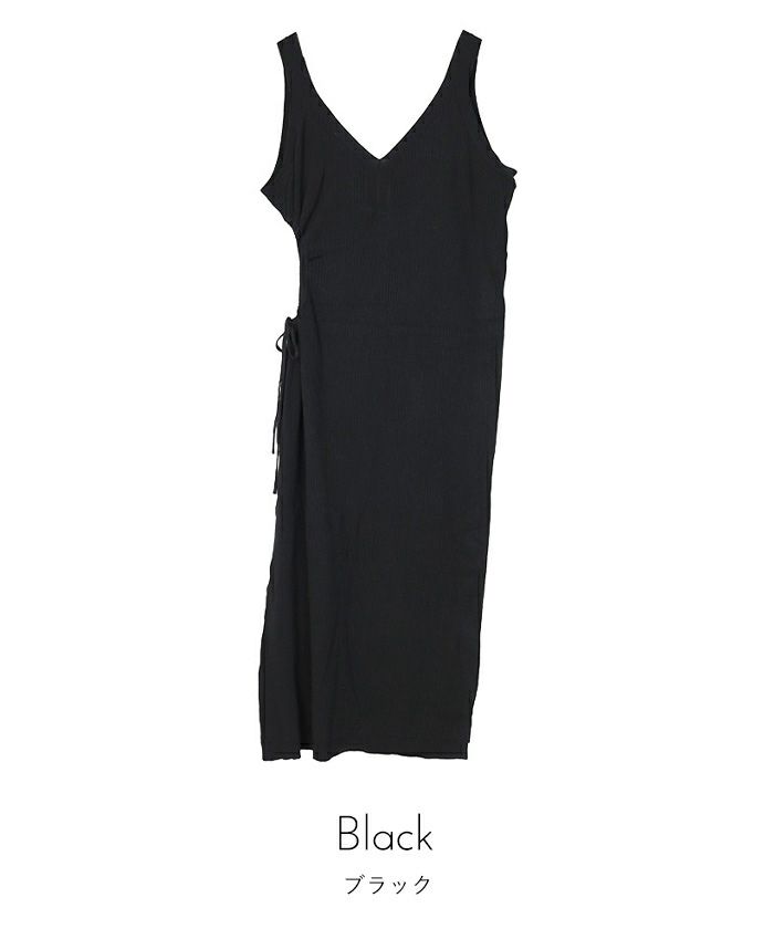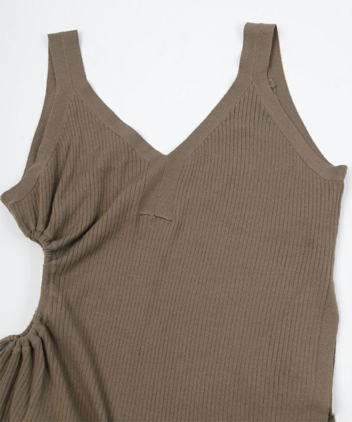 ・トレンドのカットアウトデザインとスリットのアシンメトリーデザインのキャミワンピース。