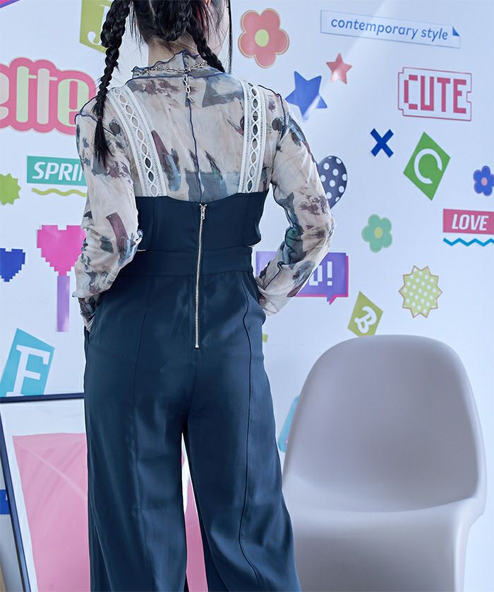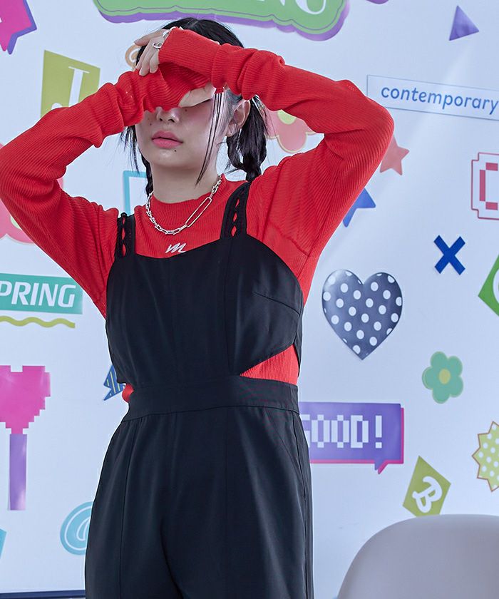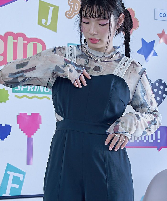 商品情報 ・肩紐のレースがポイントのオールインワン。