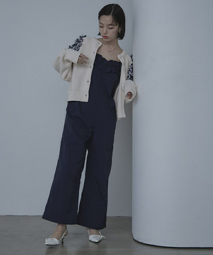 ・大人可愛いを演出してくれるオフショルオールインワン。