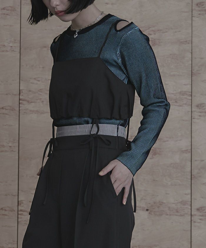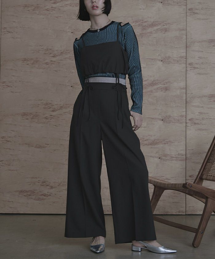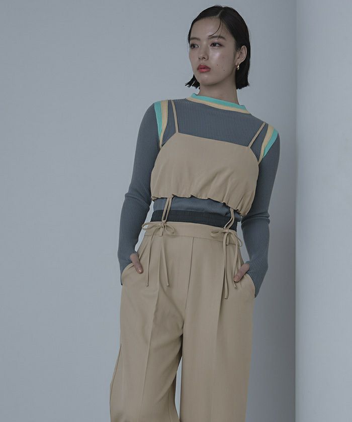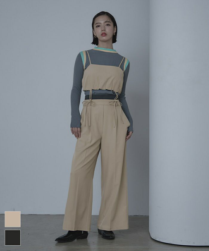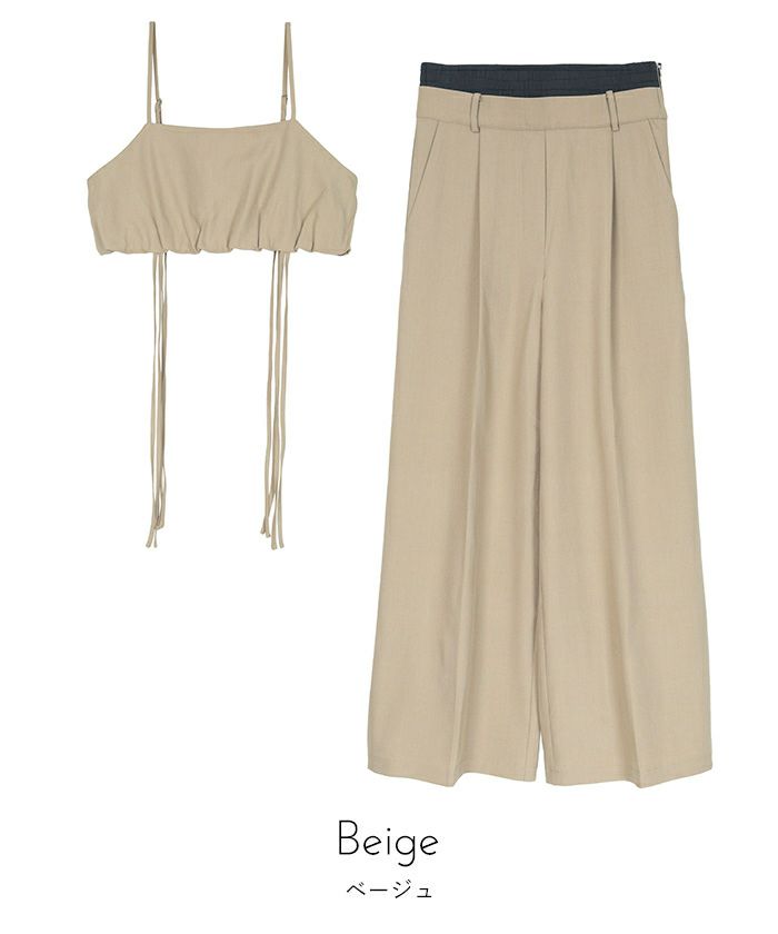 ・トレンド感のあるバルーンシルエットのビスチェと、ダブルウエストパンツのセットアップ