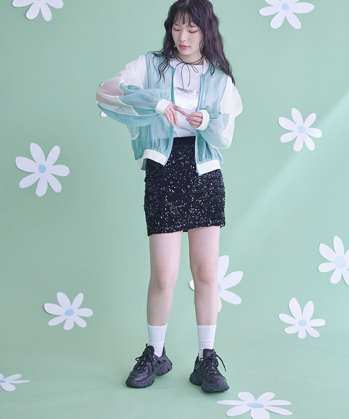 ・程良い透け感を演出するボリュームシアーブルゾン。