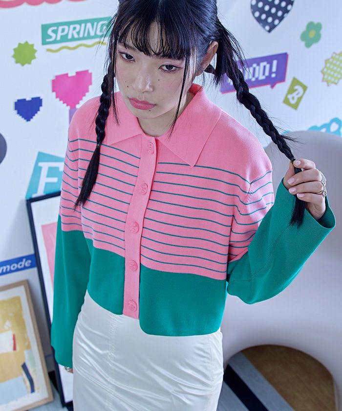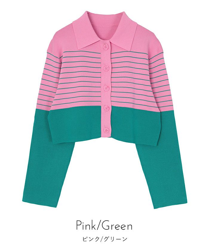 ・カーディガンとしてはもちろん、ボタンを全部閉めて襟付きショートトップスとしても着用できます。