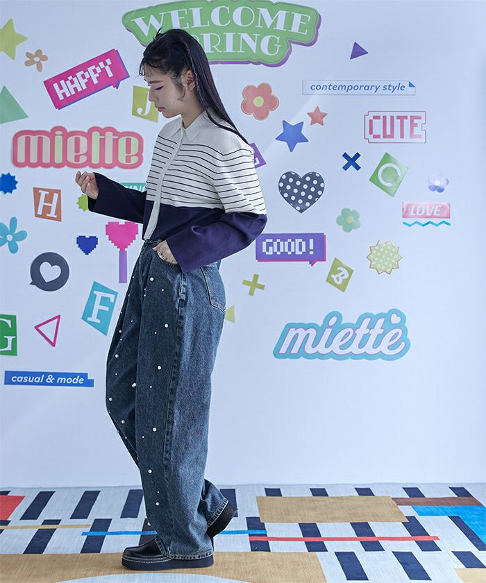 着用 / サイズ:F カラー:ピンク/グリーン、ブルー/イエロー、オフホワイト/レッド、オフホワイト/ネイビー