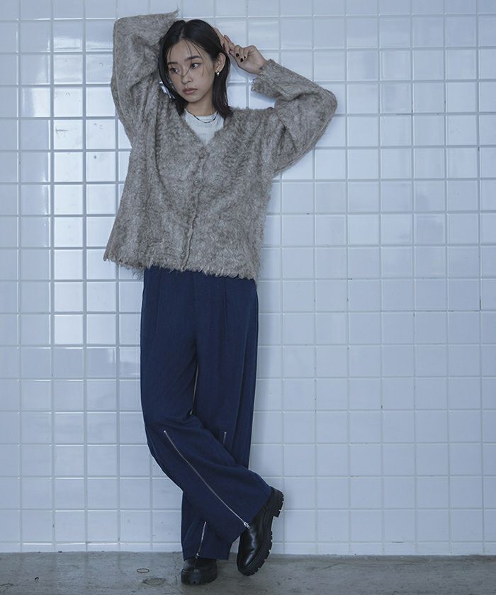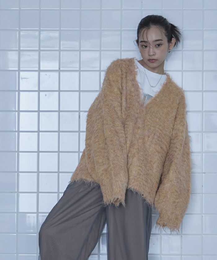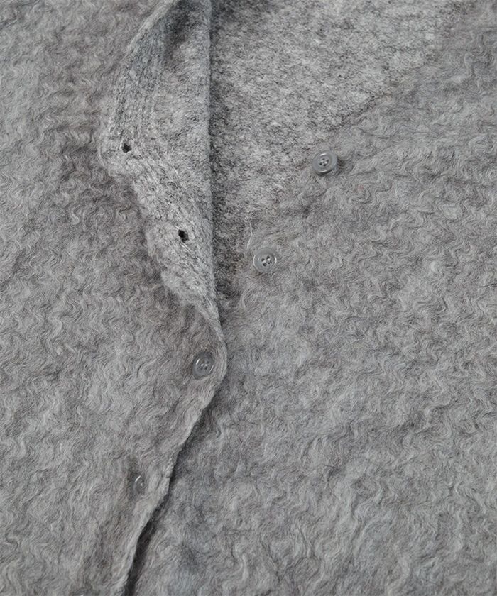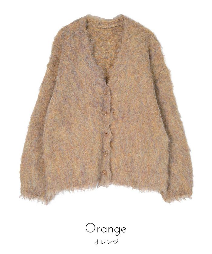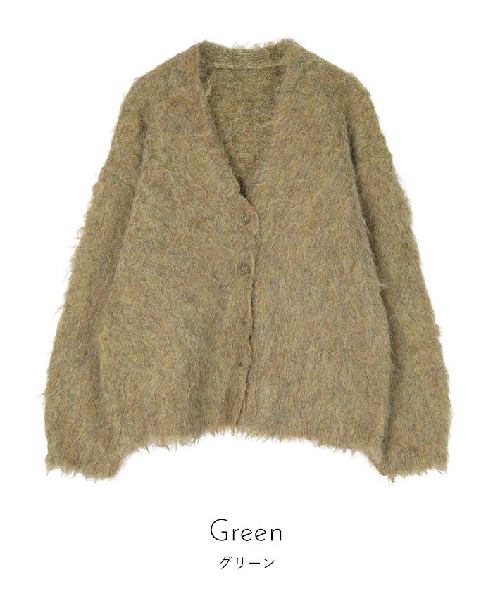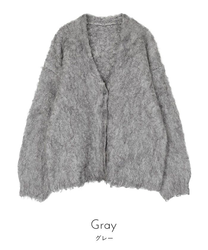 ・毛足が長めのシャギーと表面感のあるブークレが温かさたっぷりの主役級カーディガン。