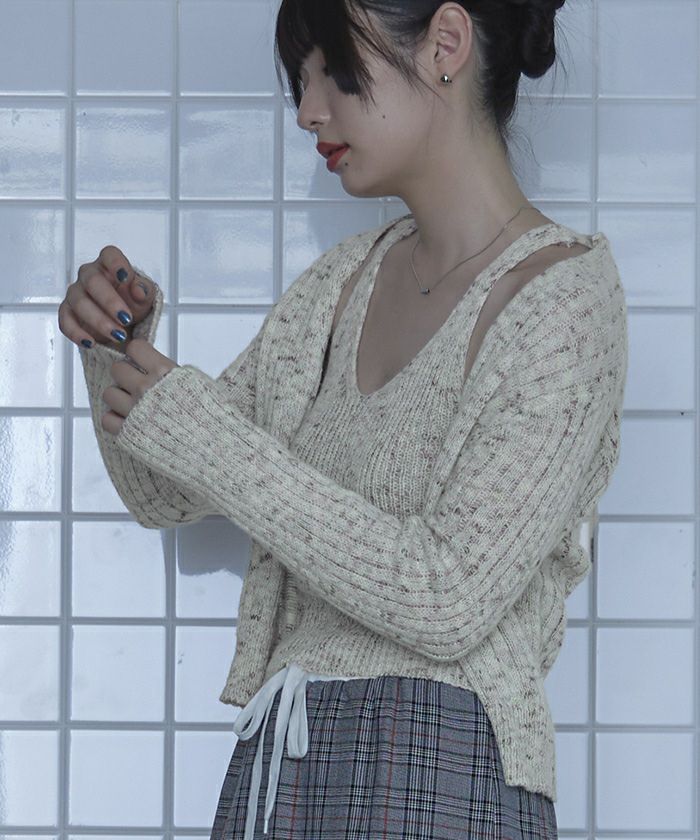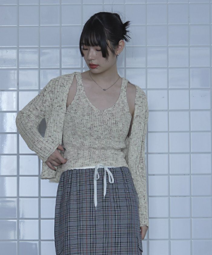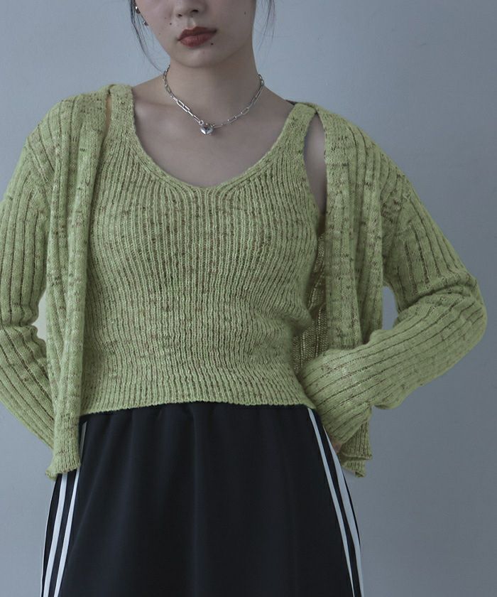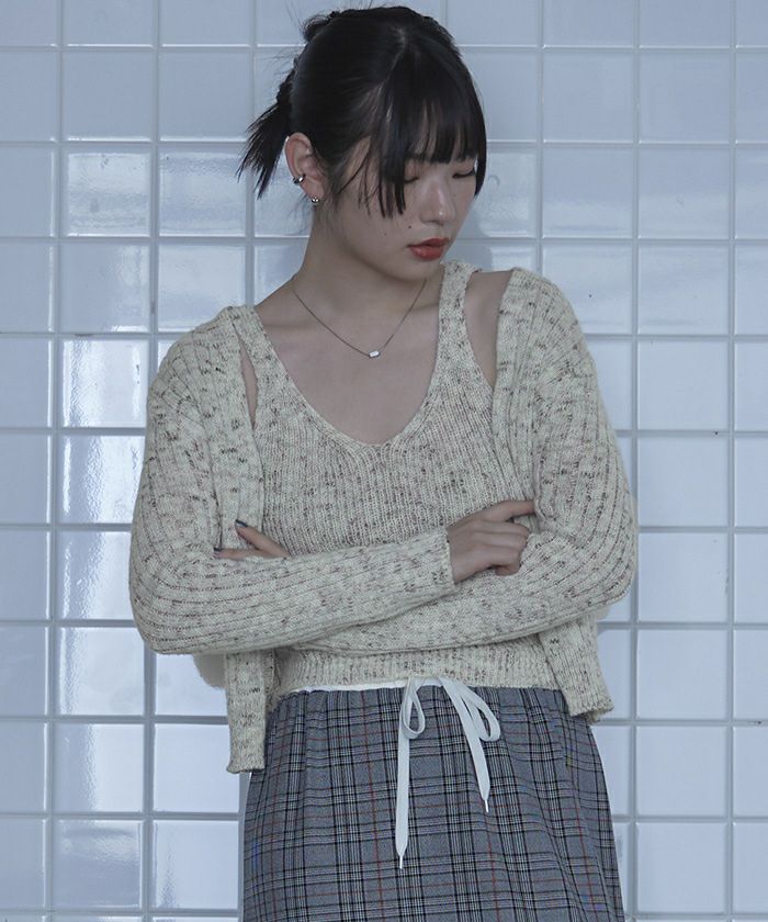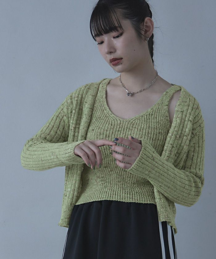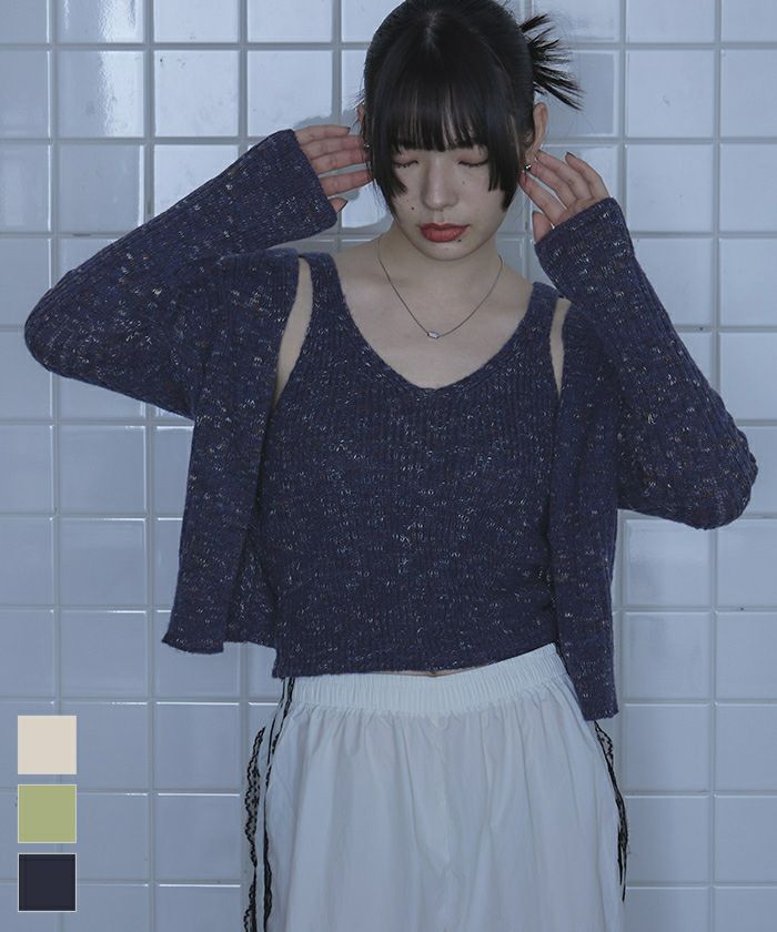 ・インナーとカーデの編地が違うので単調に見えず、単品使いができるのも嬉しいポイント