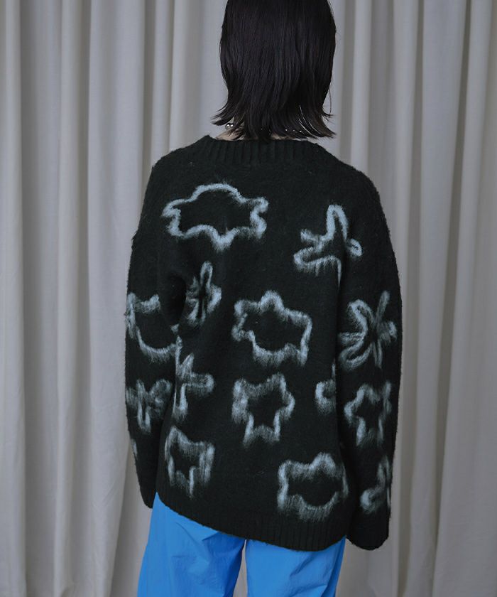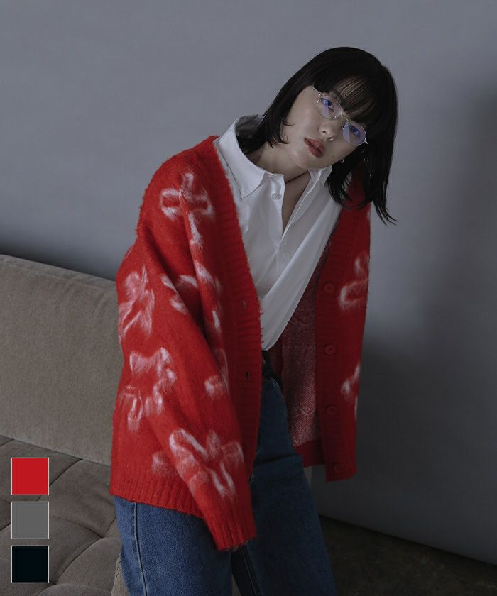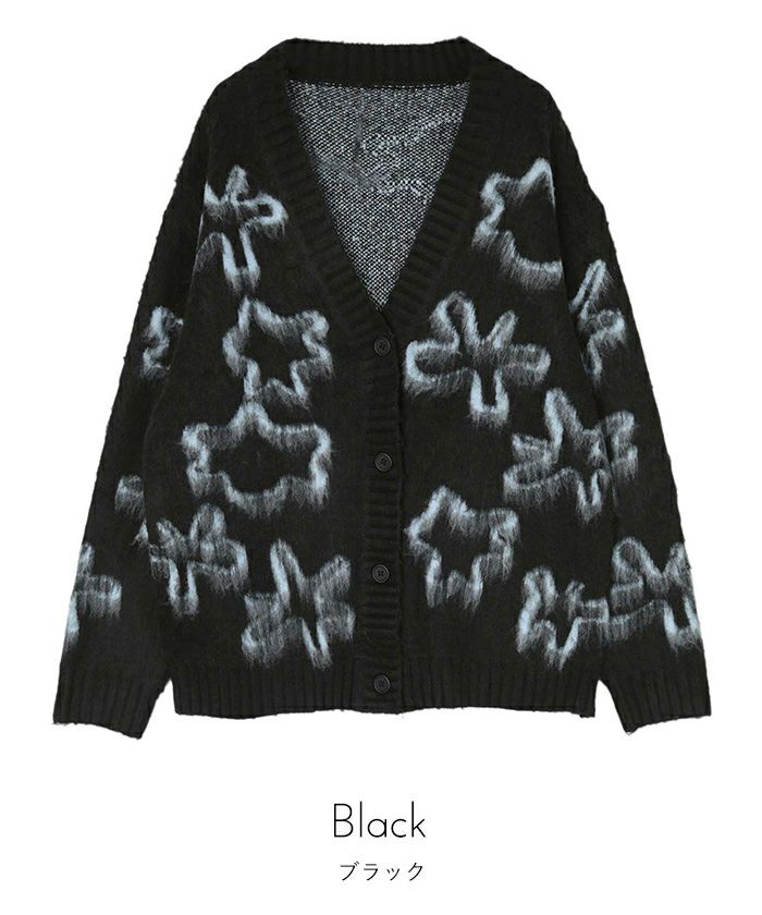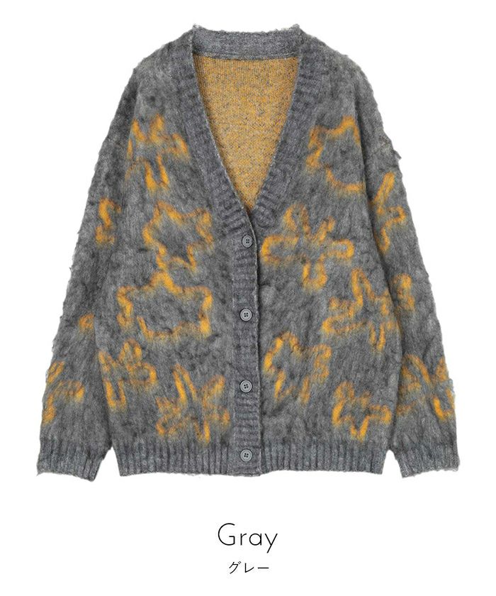 ・トレンドのジャカードで表現されたフラワー柄がポイントのニットカーディガン。