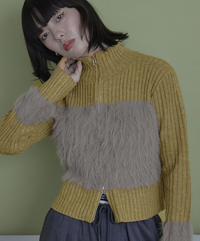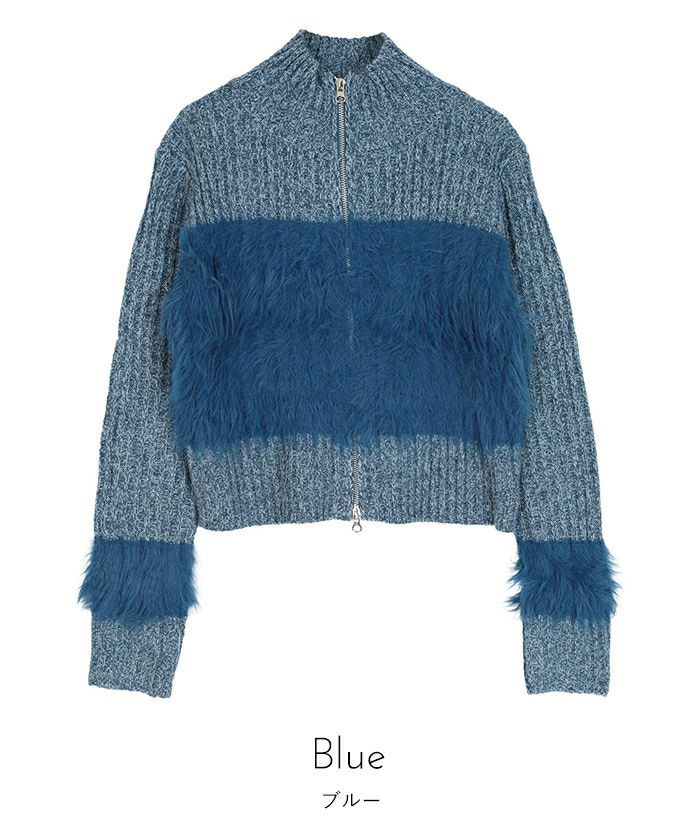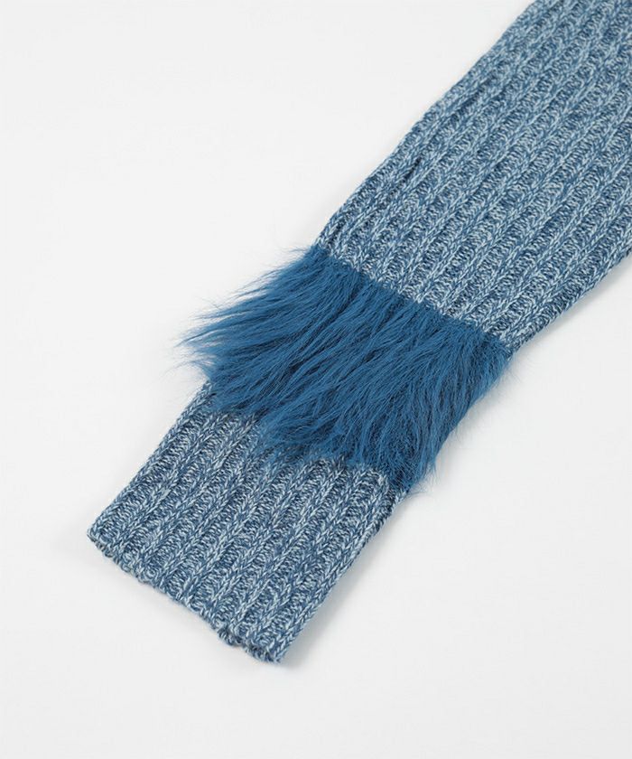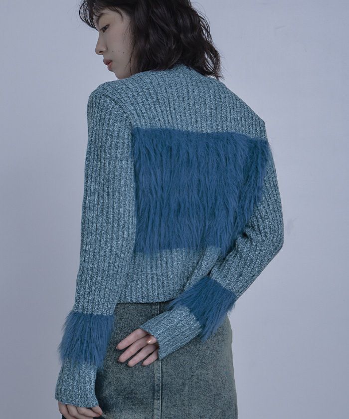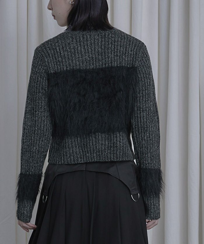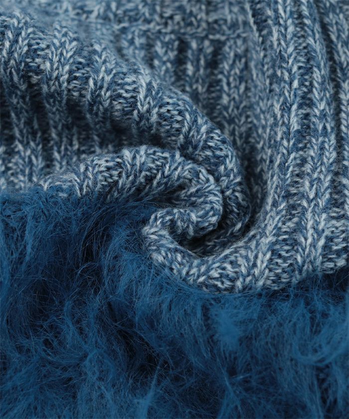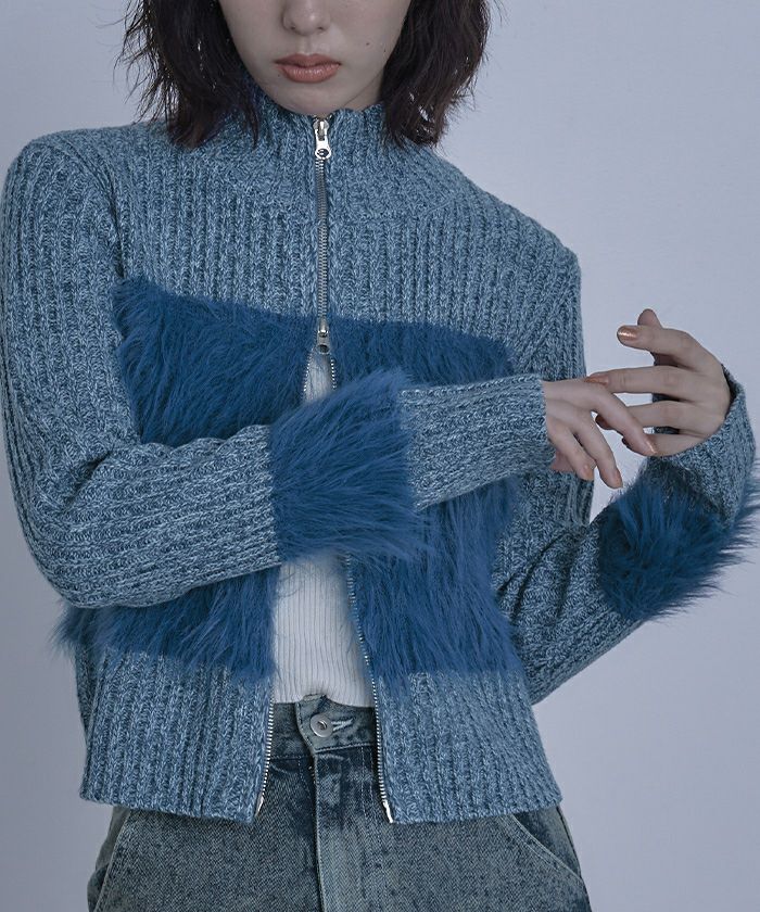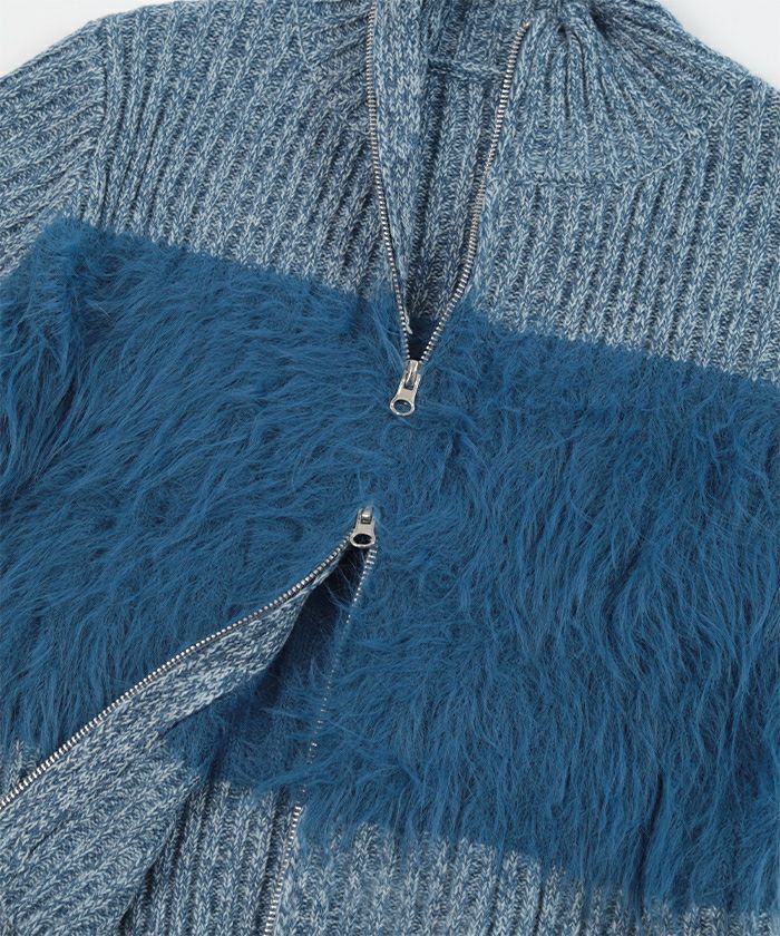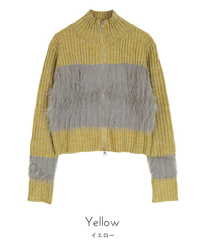 ・毛足の長いシャギー糸と、ミックスの糸を使ったニットカーディガン