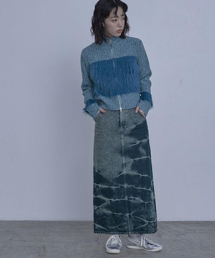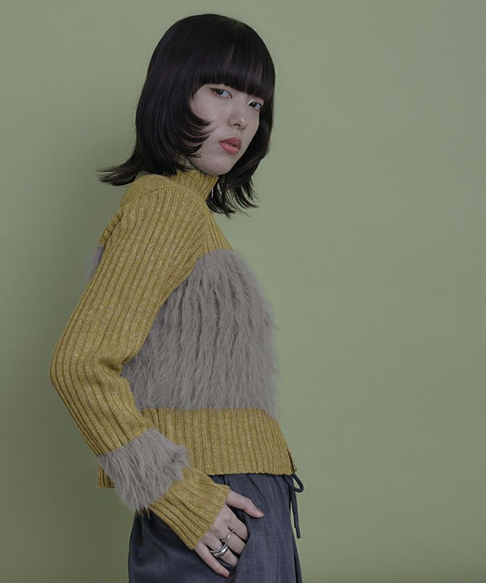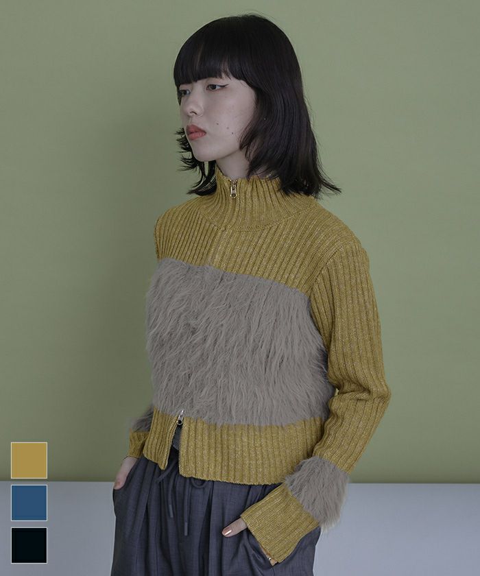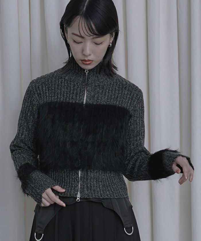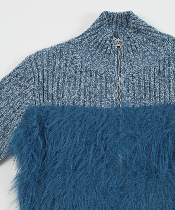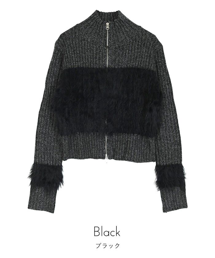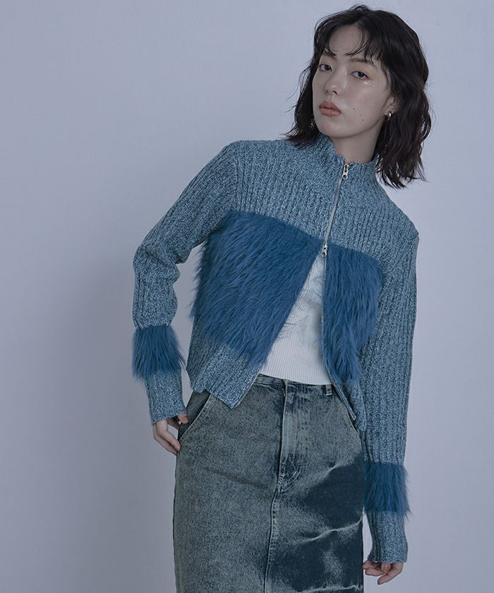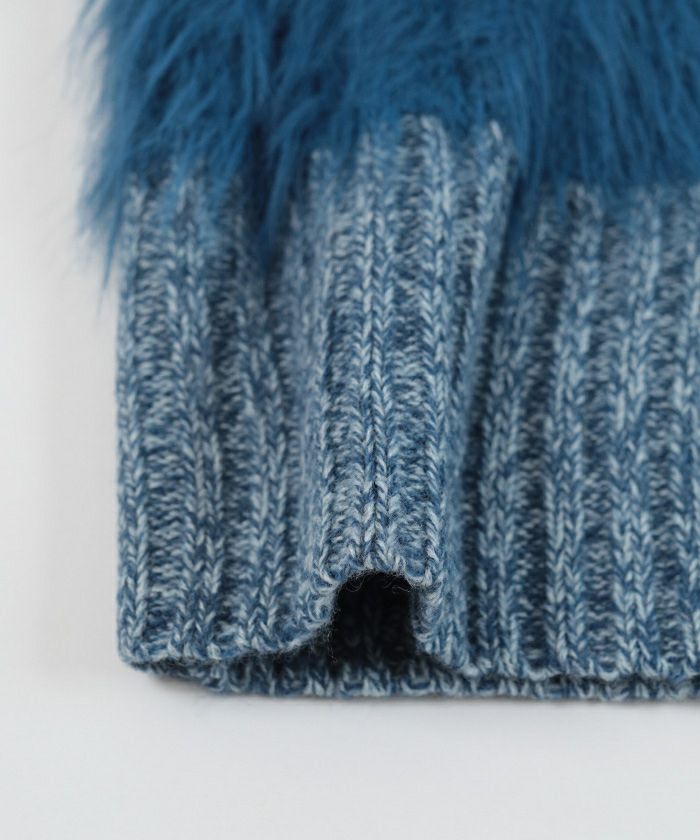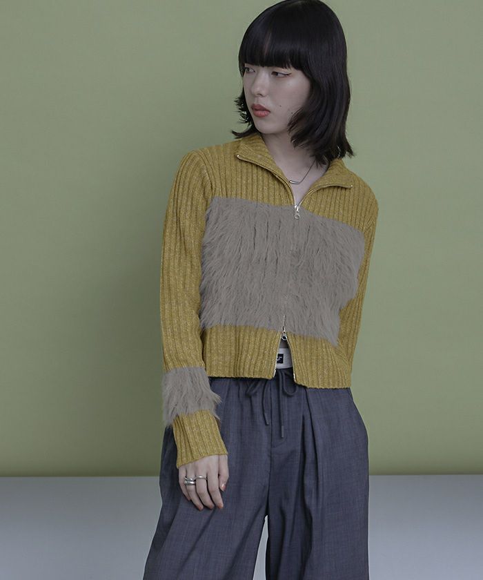 ・毛足の長いシャギー糸と、ミックスの糸を使ったニットカーディガン