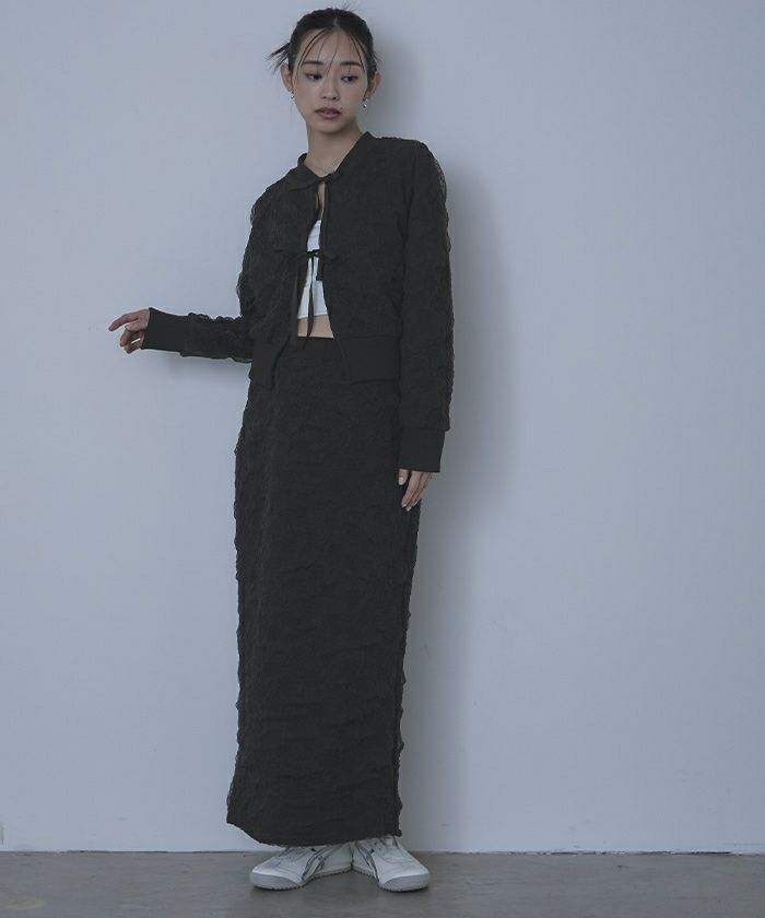 ・同素材のスカートとのセットアップ着用もおすすめ◎