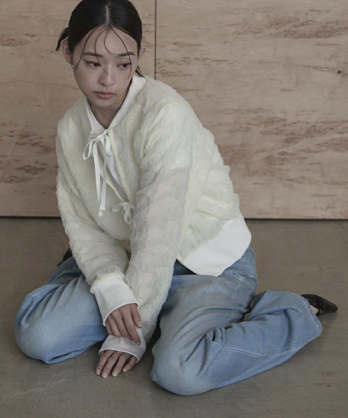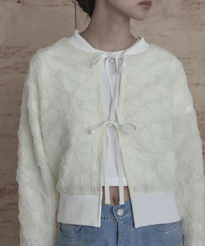 ・表面の凸凹感がかわいいジャガード素材のカーディガン