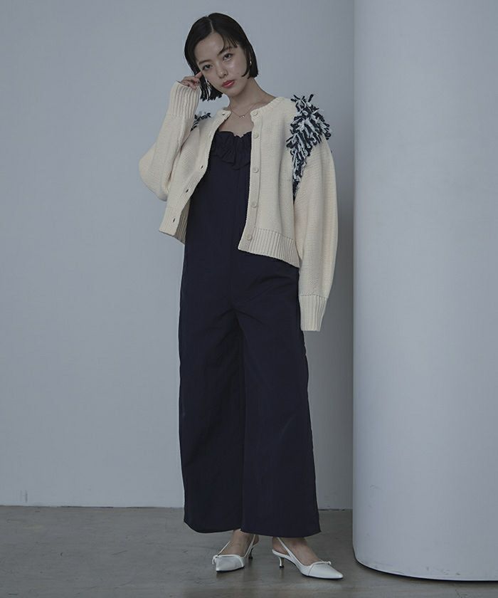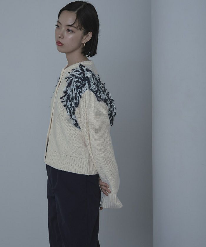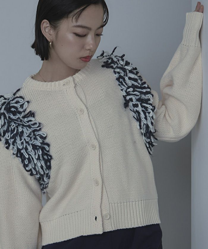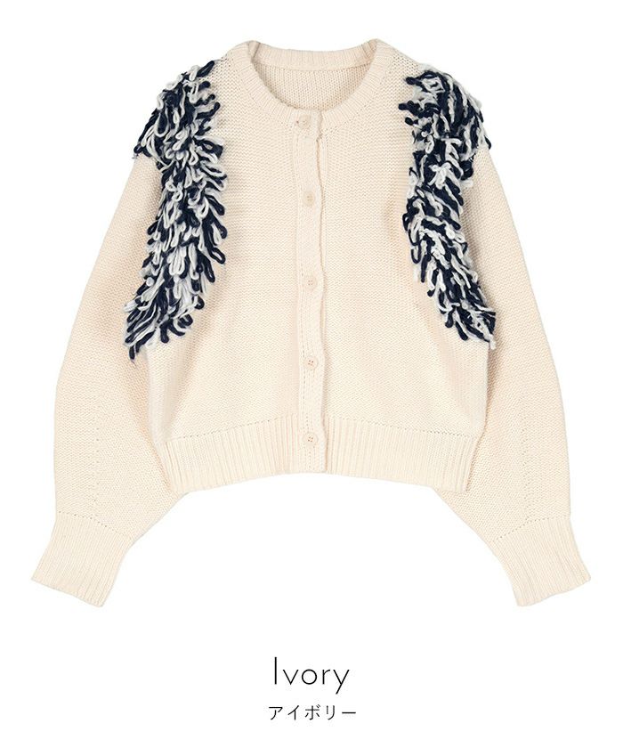 商品情報 ・肩の配色ループ編みがポイントのニットカーディガン