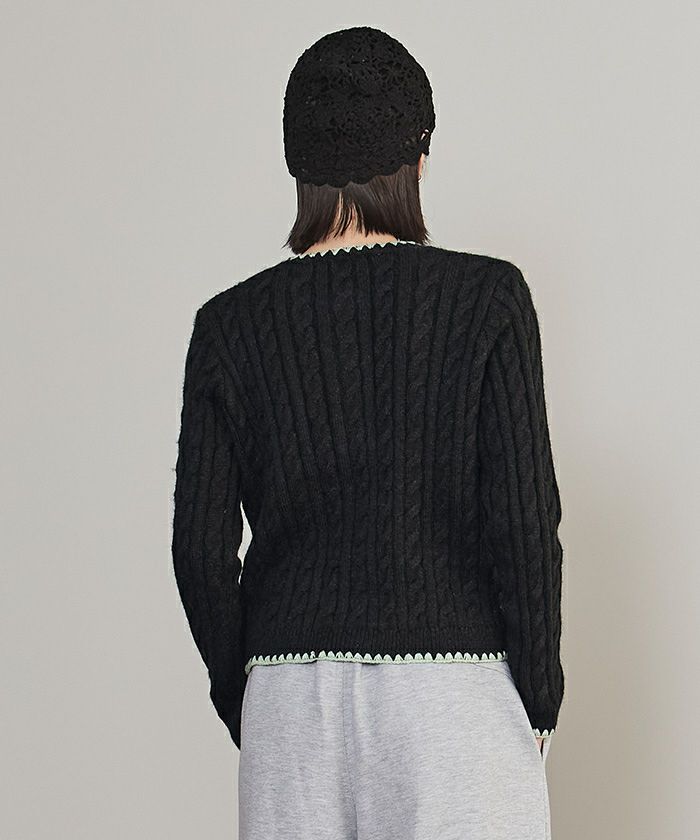 配色ステッチケーブルニットカーディガン