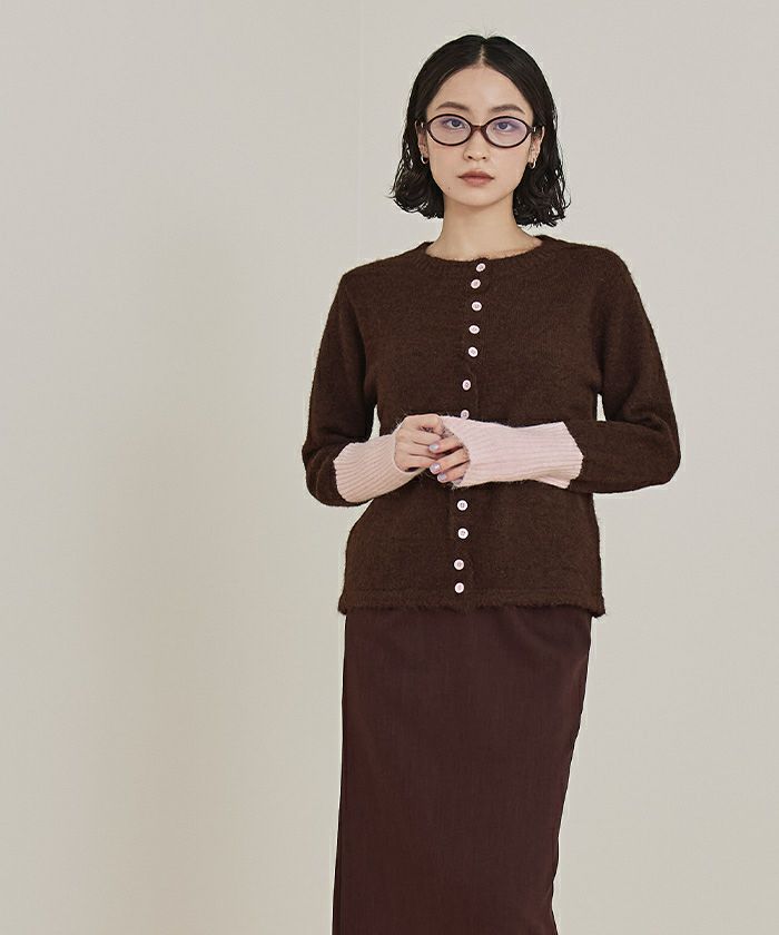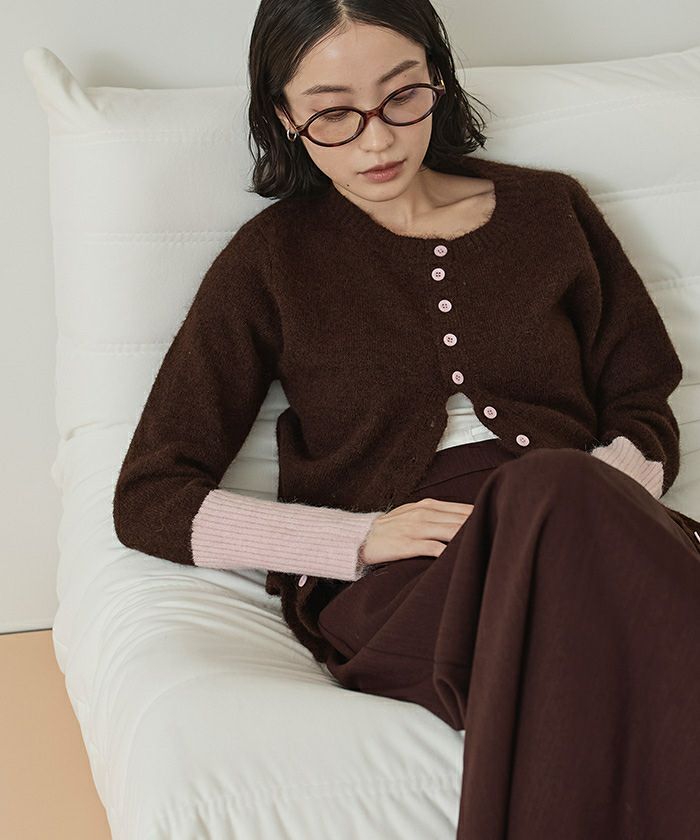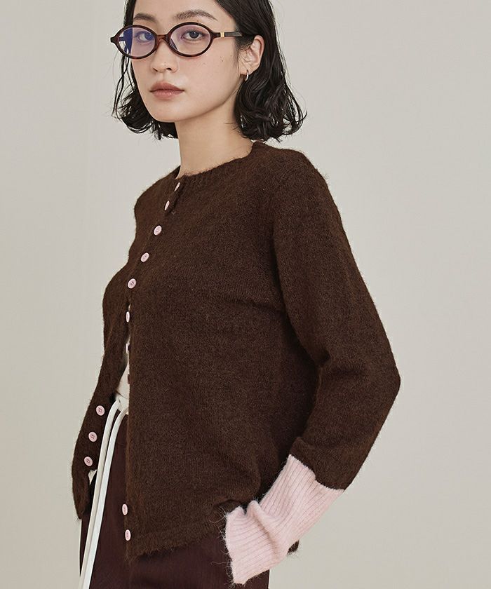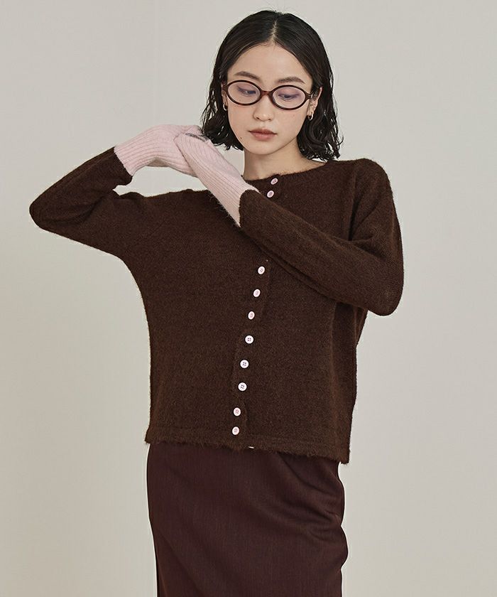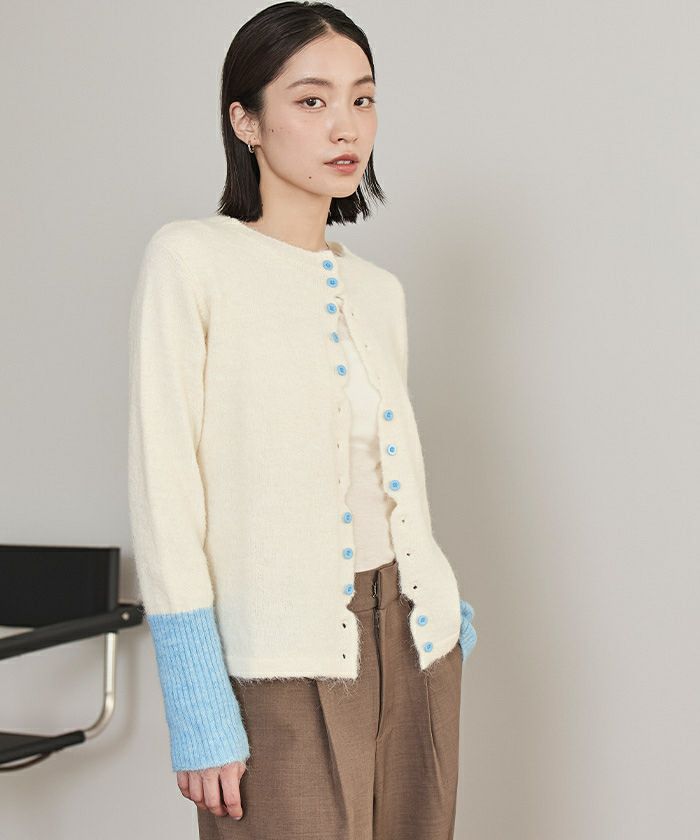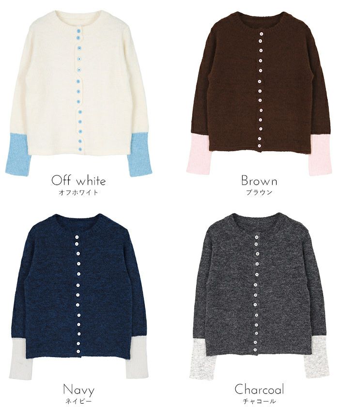 ・カラフルなボタンと袖口の配色が目を引くデザインカーディガン
