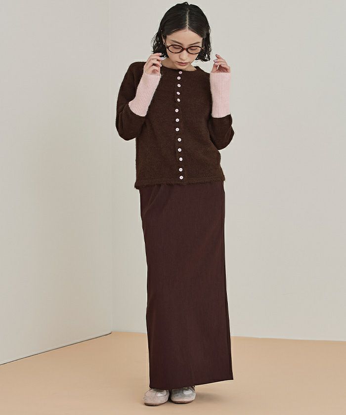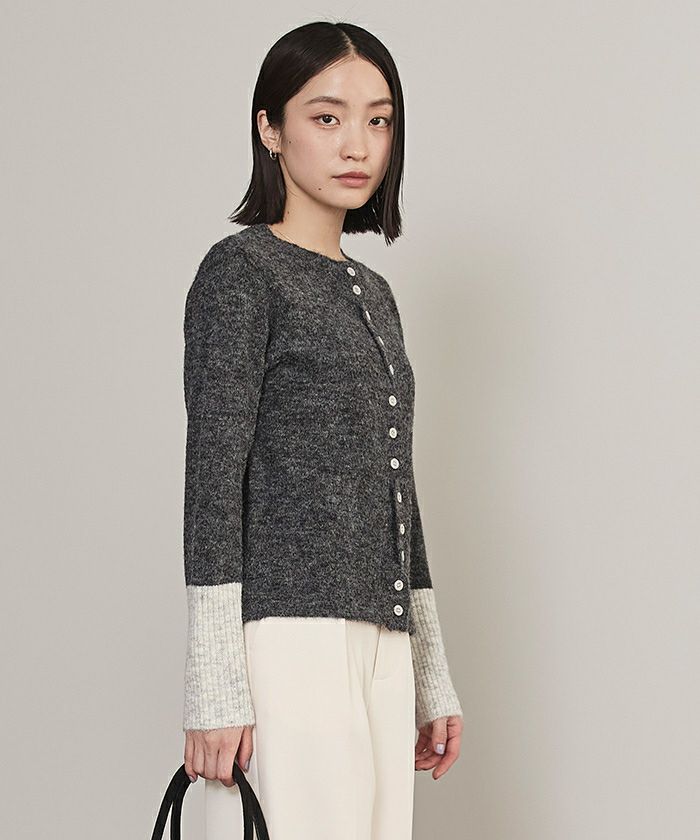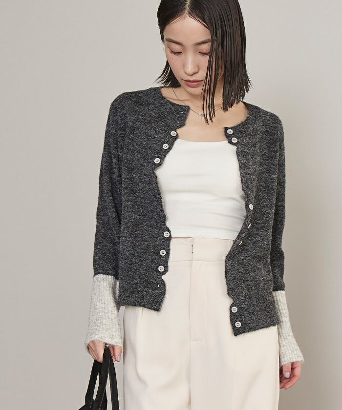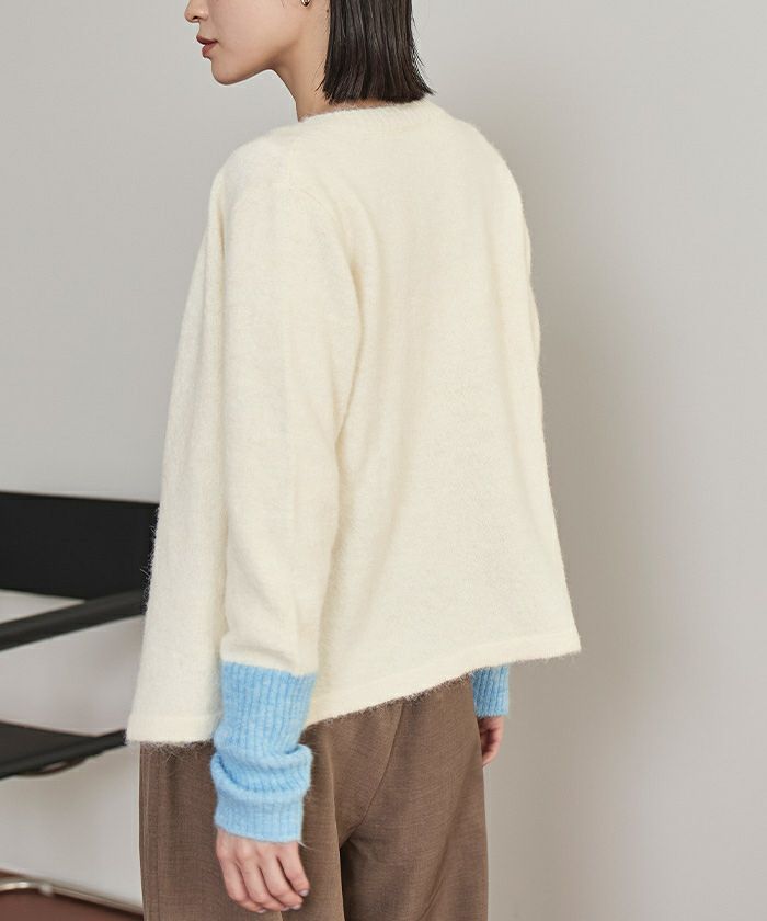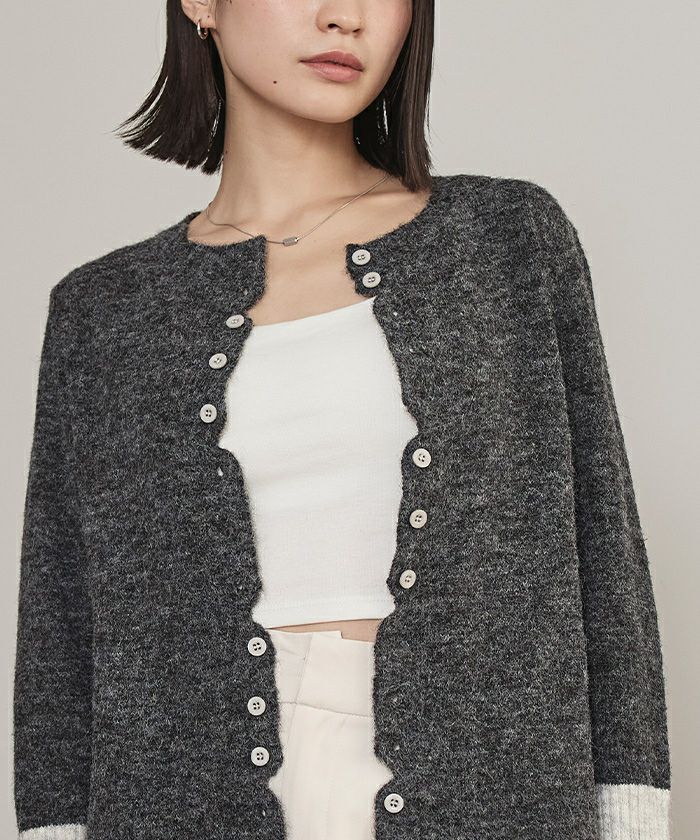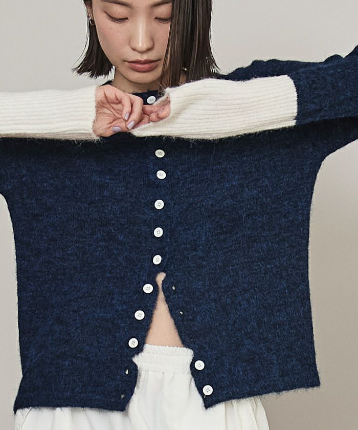 ・カラフルなボタンと袖口の配色が目を引くデザインカーディガン