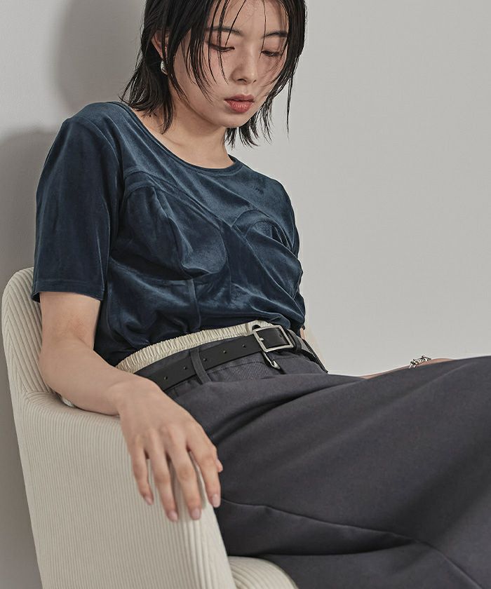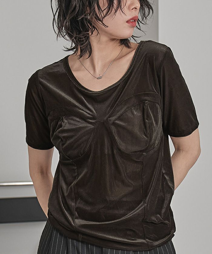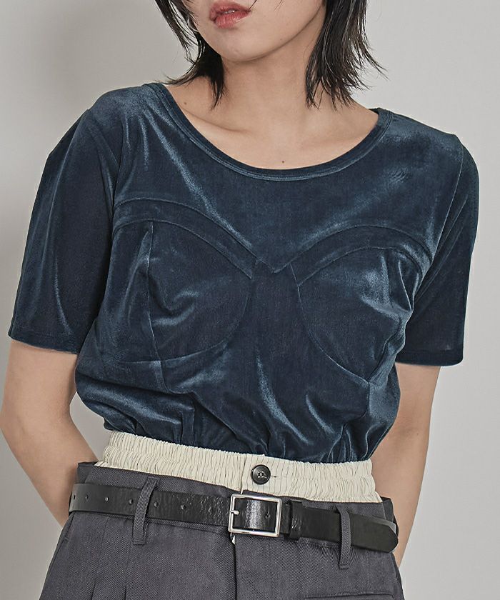 ・立体的なビスチェデザインが特徴的なベロアトップス