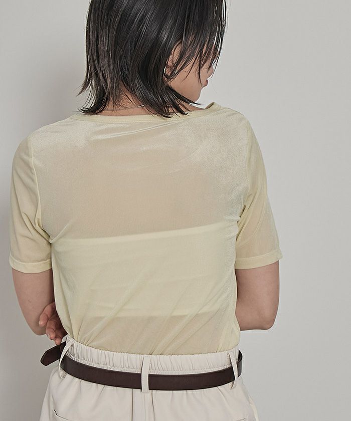 ・上品な光沢感のあるベロア素材が高級感を演出し、シアー素材が抜け感をプラス