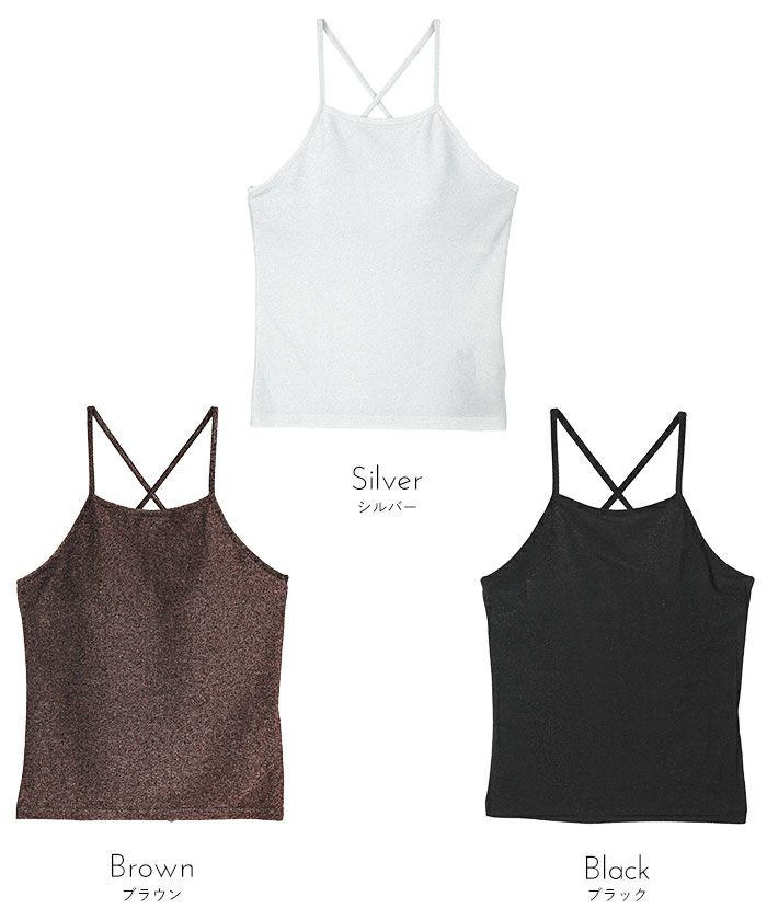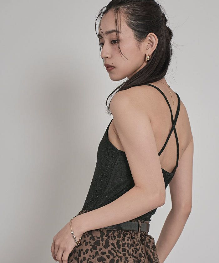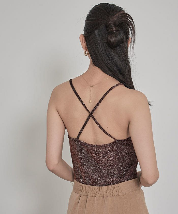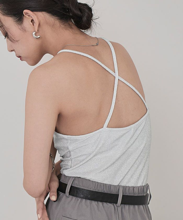 カップ付きラメバッククロスキャミソール