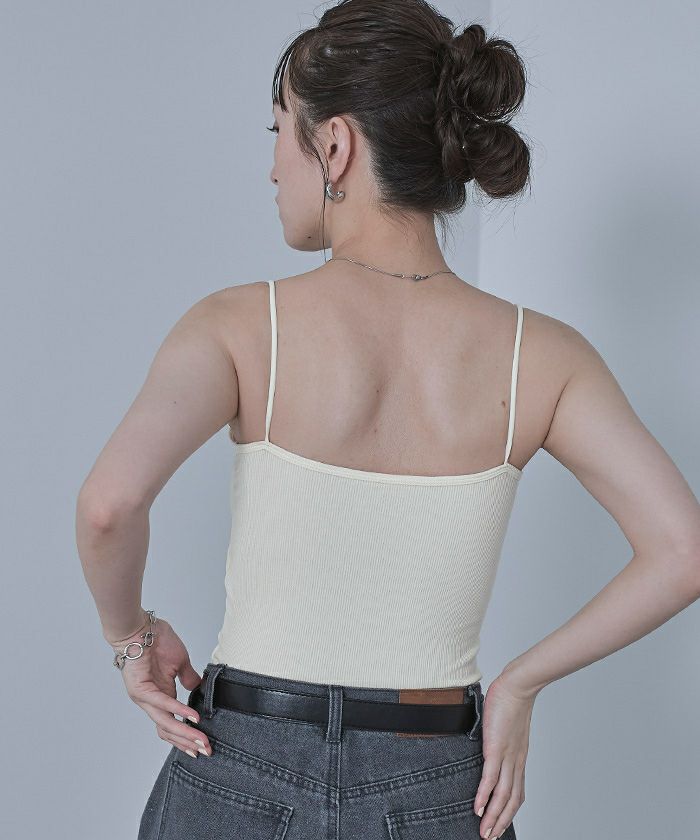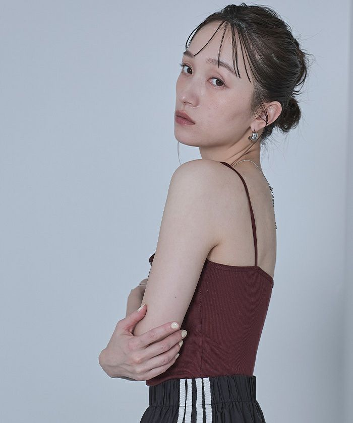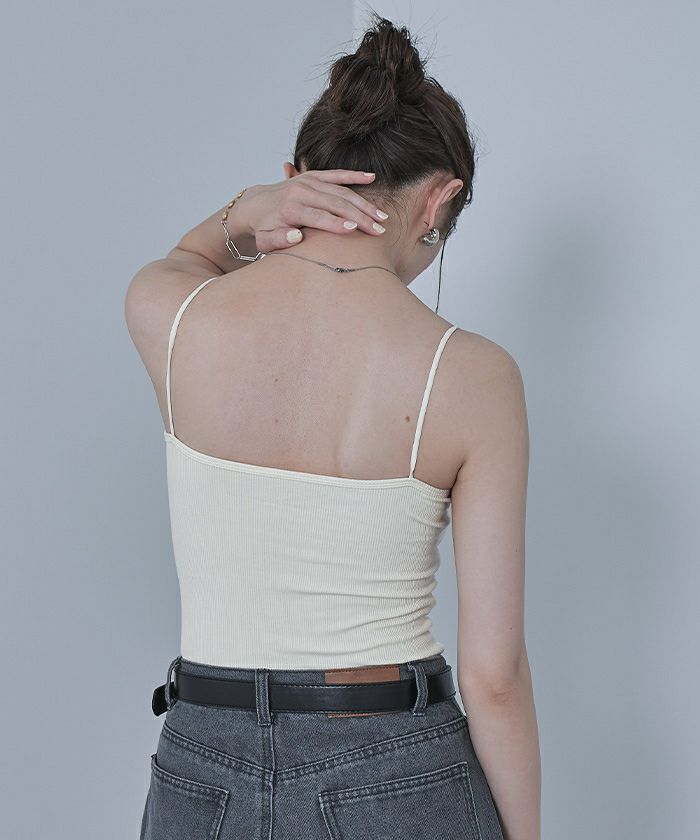 伸縮性に優れたリブ素材を使用したカップ付き(パット付き)キャミソール。