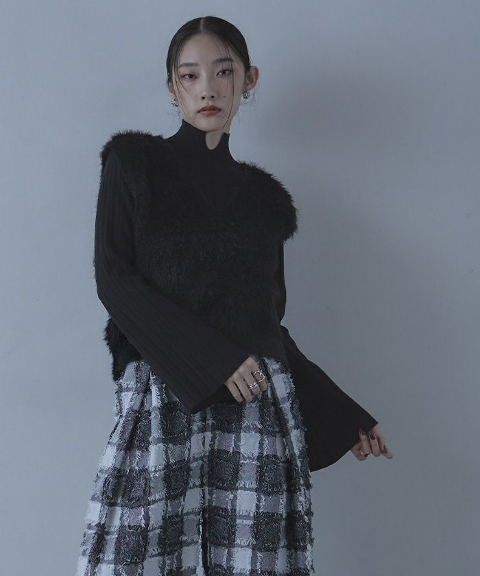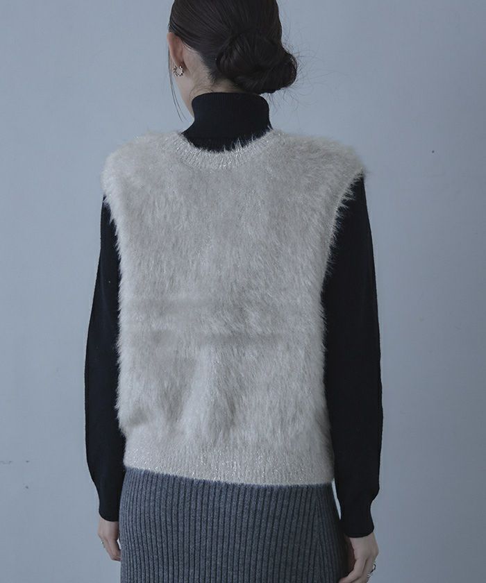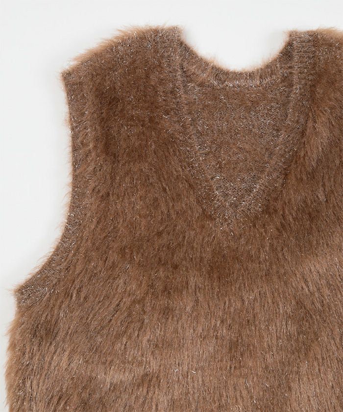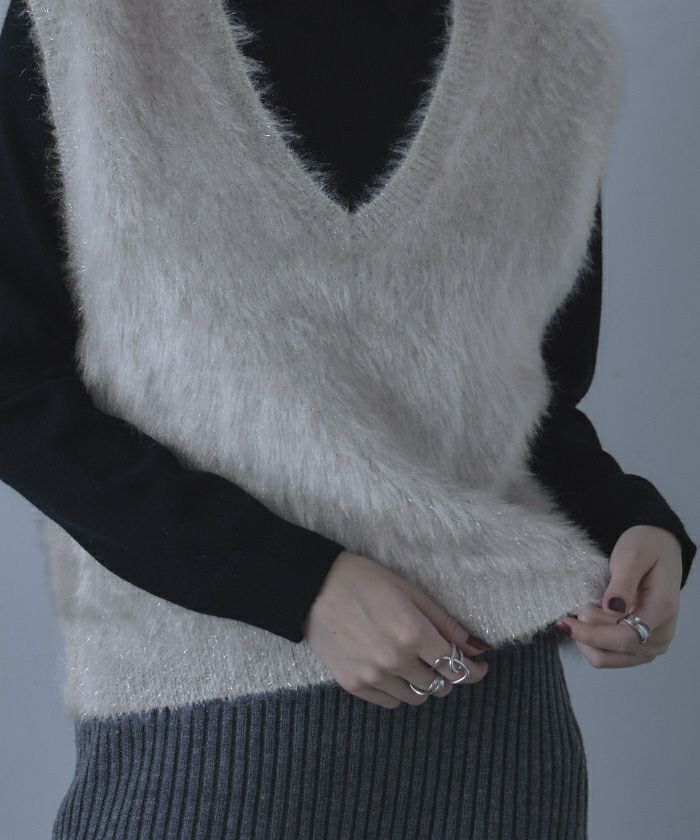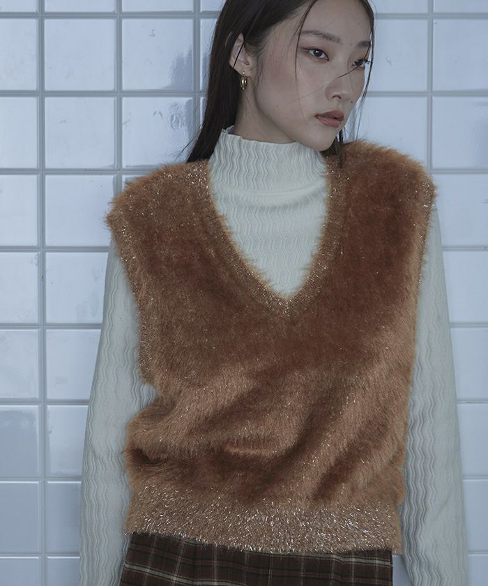 ・シャギーとラメの2種類の糸を使用したニットベスト