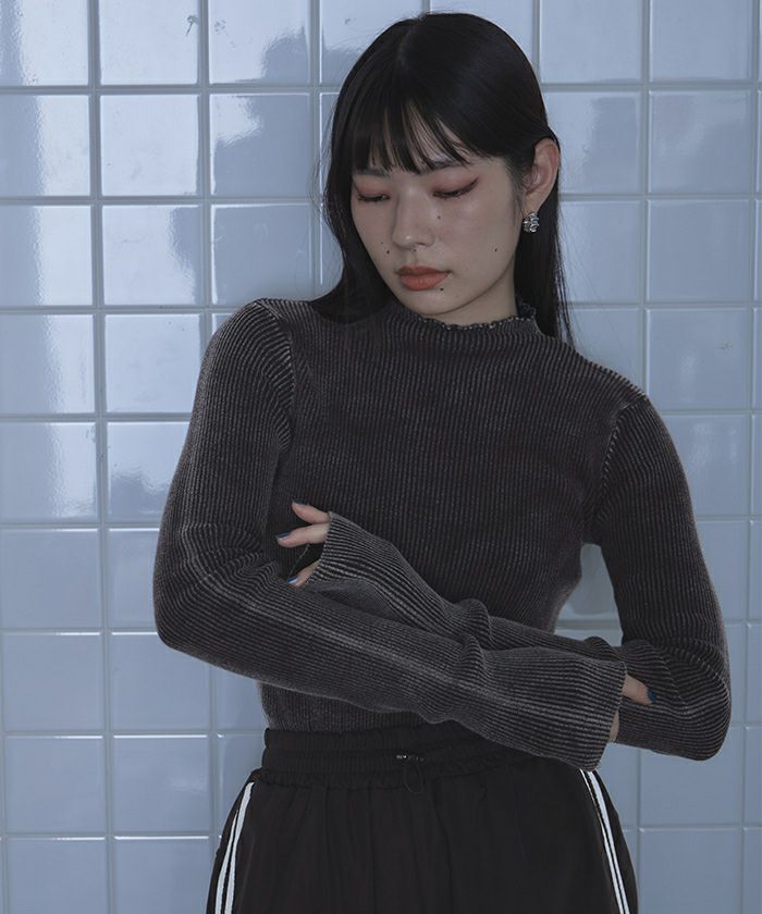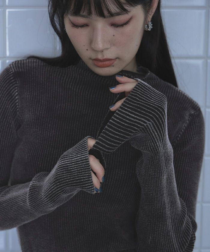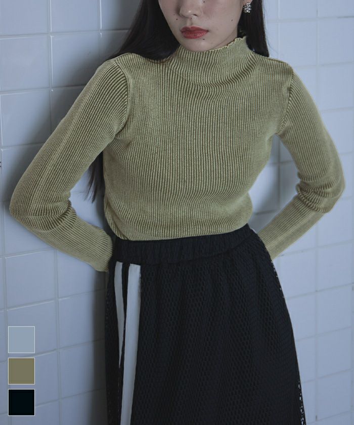 ・ヴィンテージライクなストーンウォッシュ加工がポイントのリブニット。