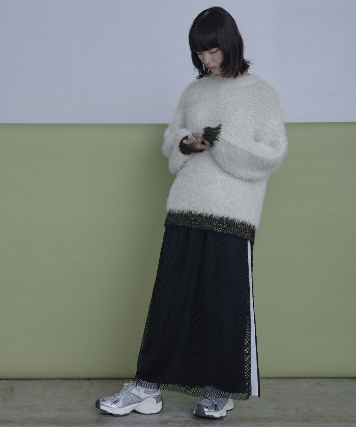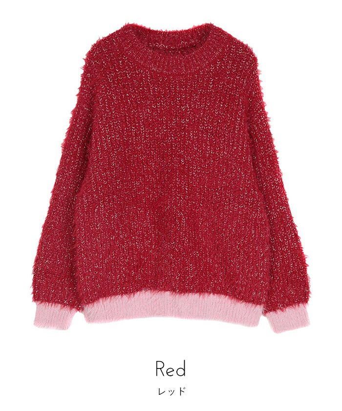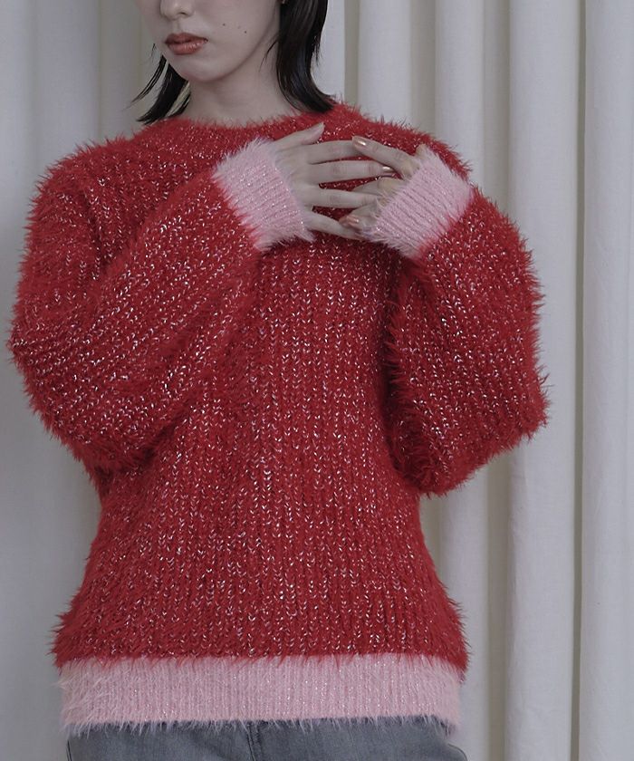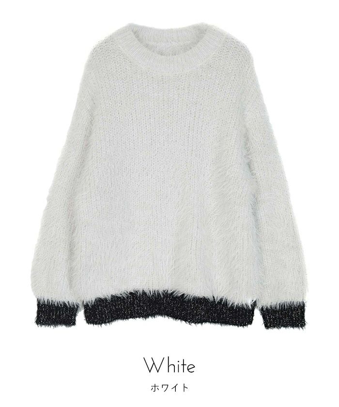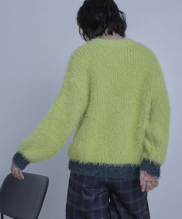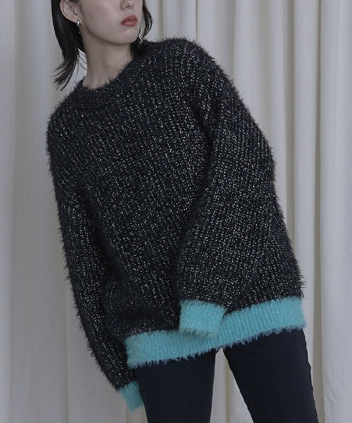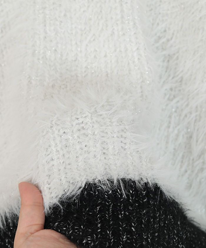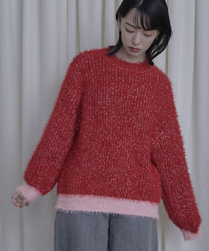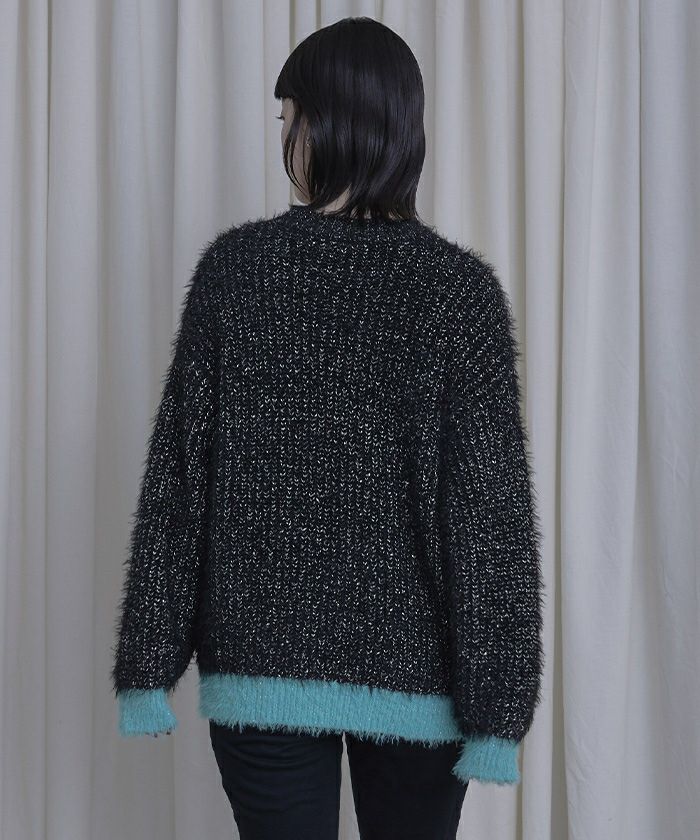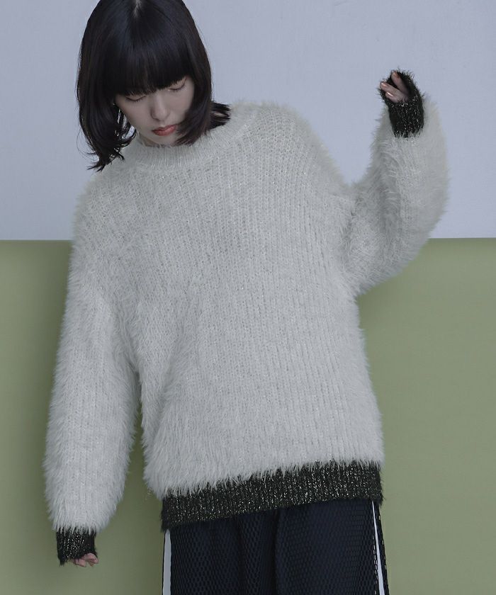 ・シャギー糸とラメ糸を使ったトレンド感満載のニット