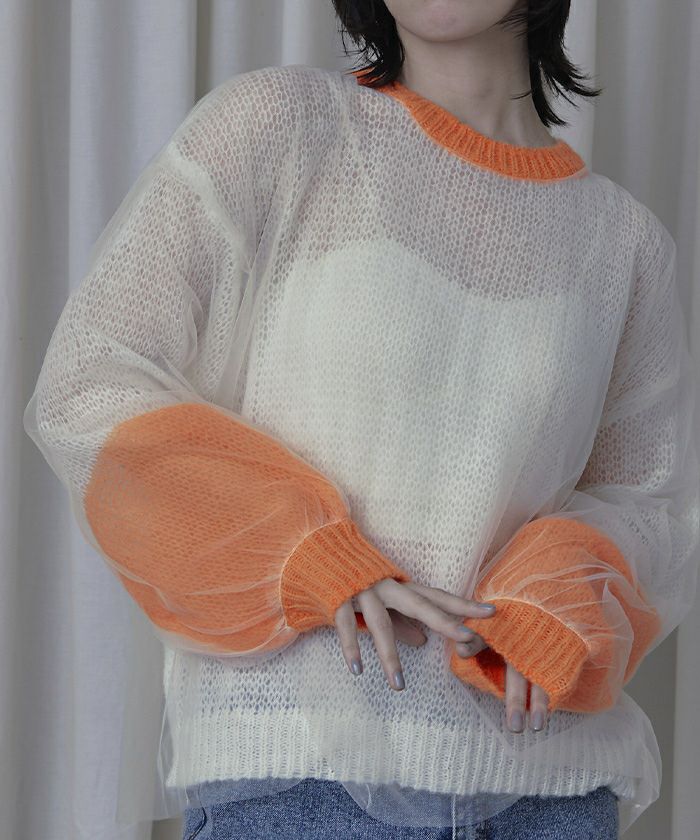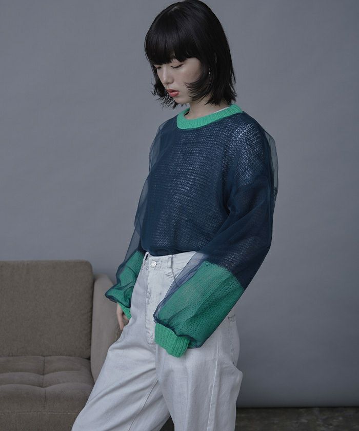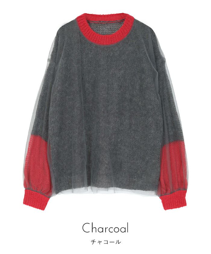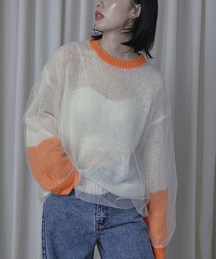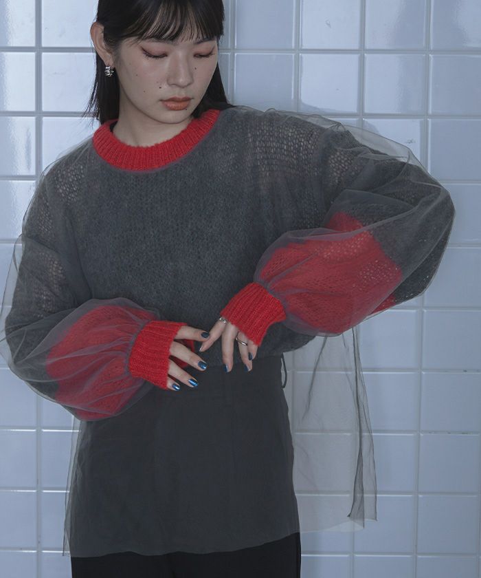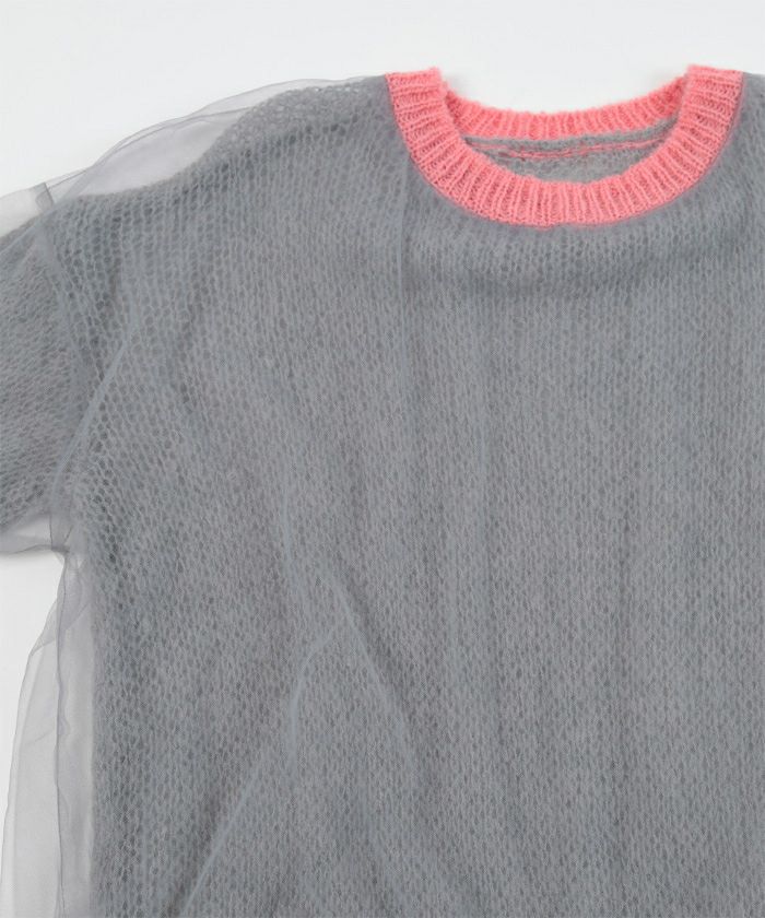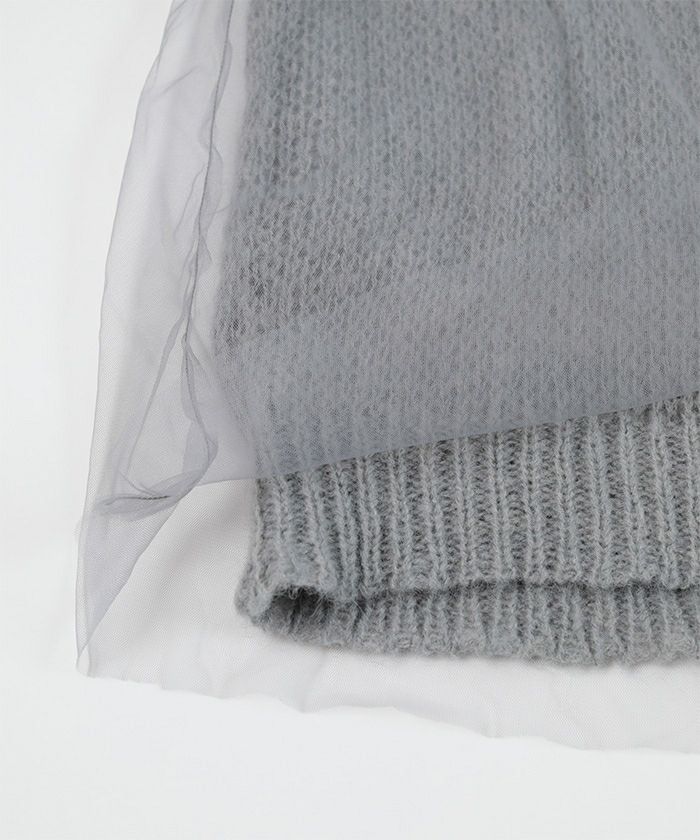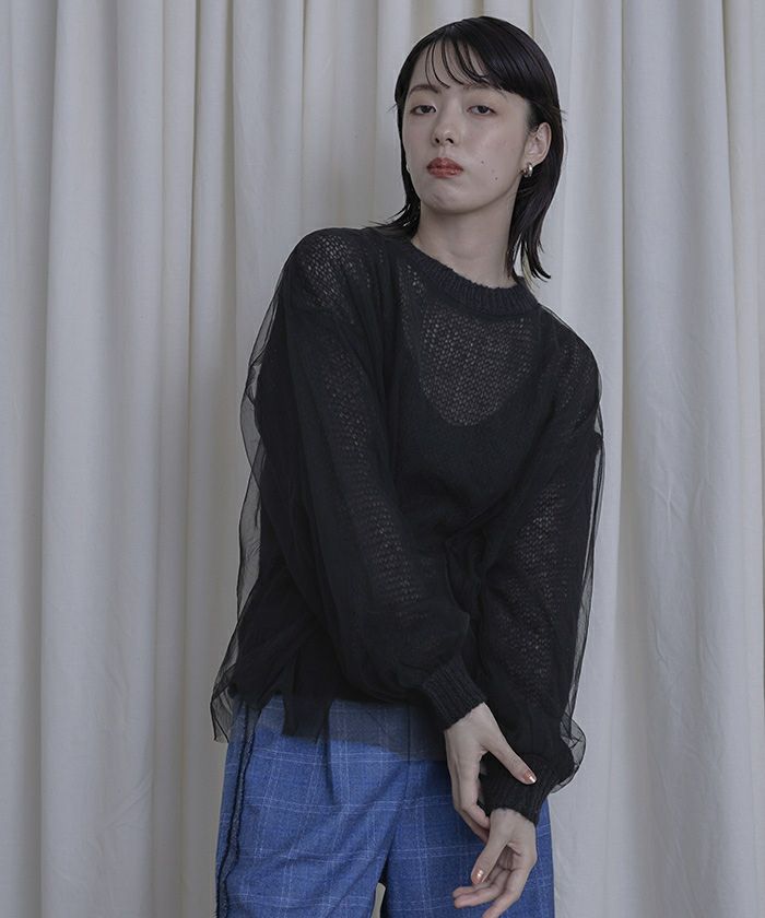 ・ローゲージニットにチュール素材がドッキングされたニット。