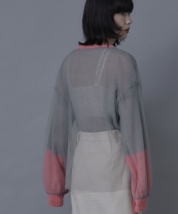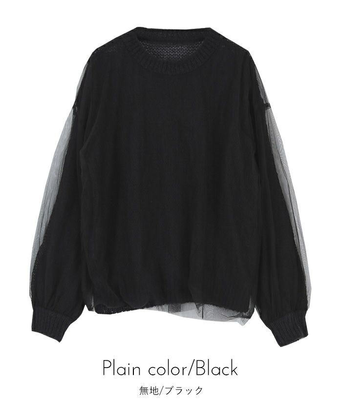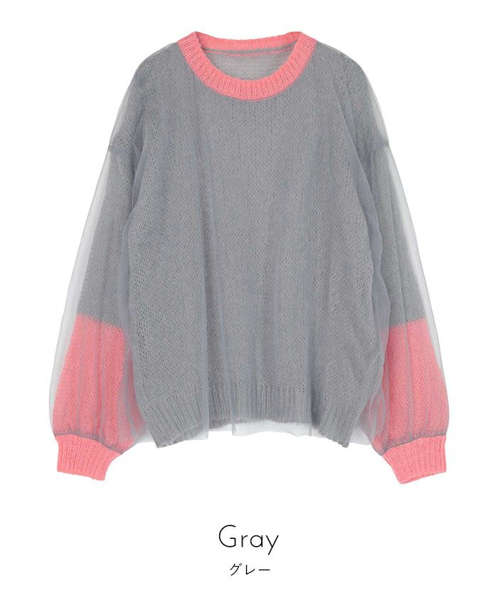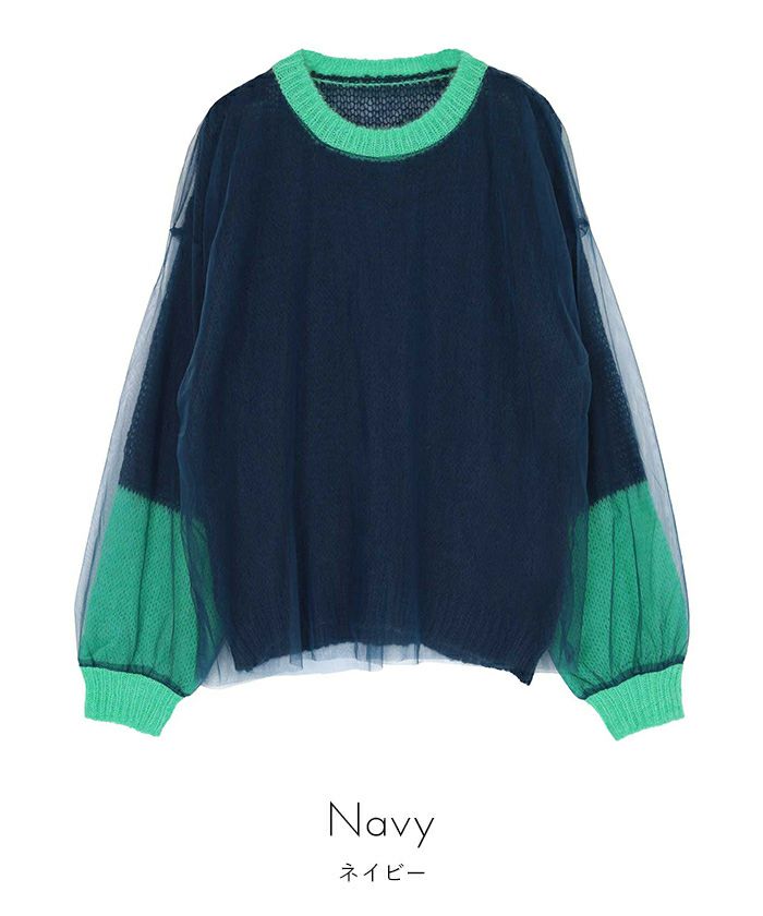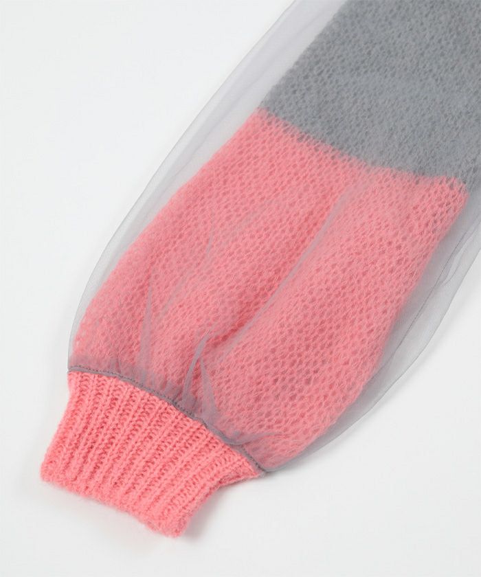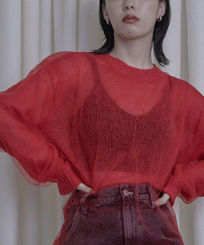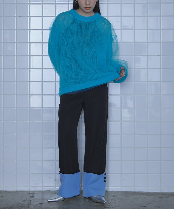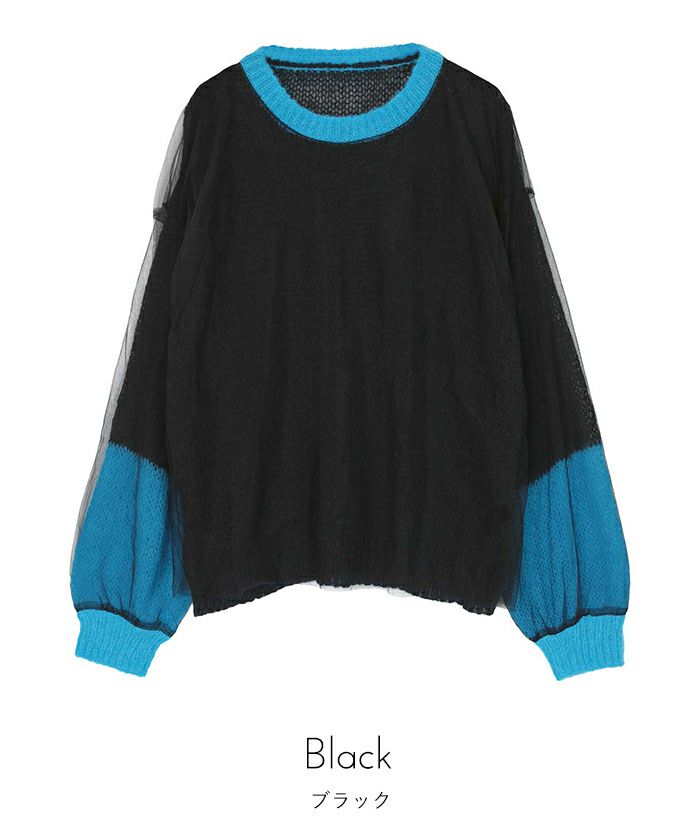 ・ローゲージニットにチュール素材がドッキングされたニット。