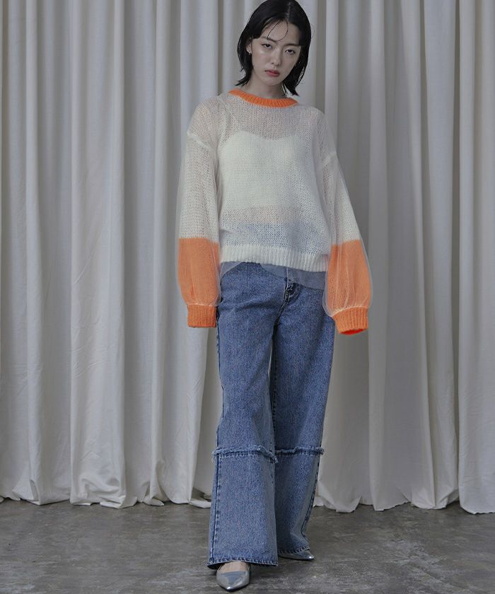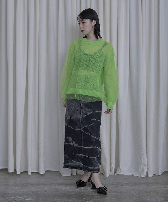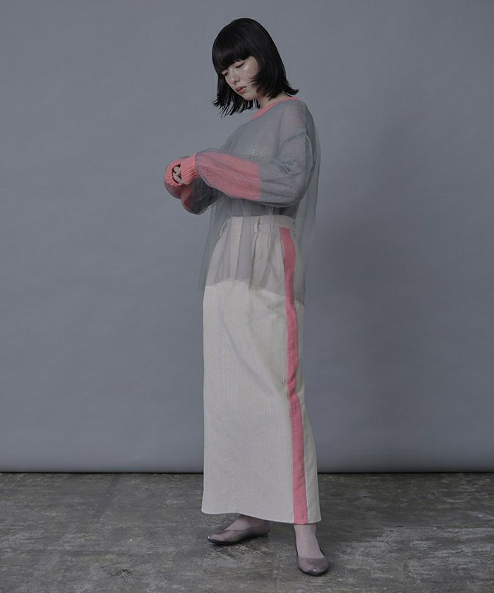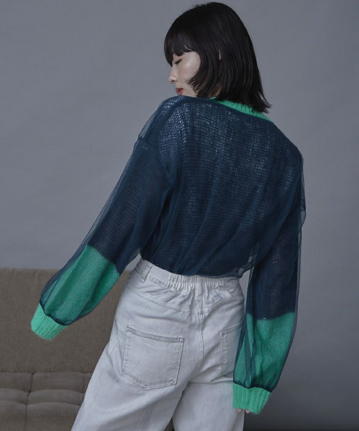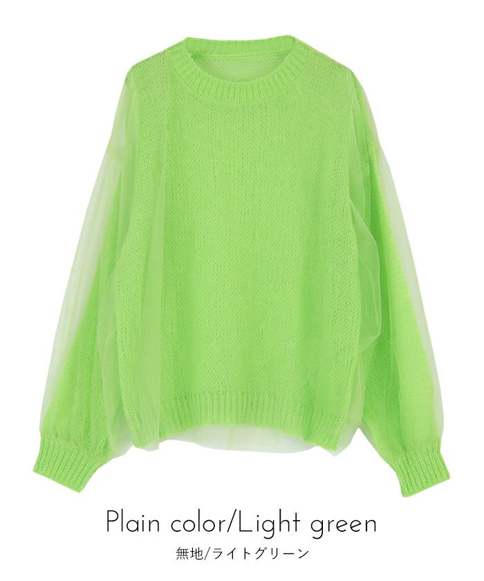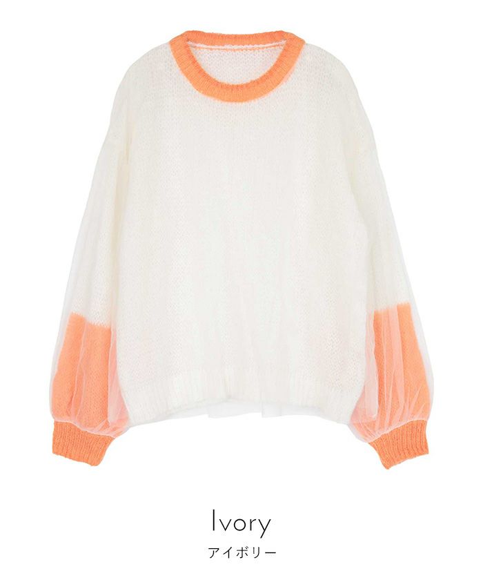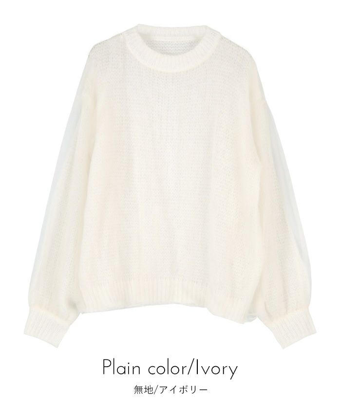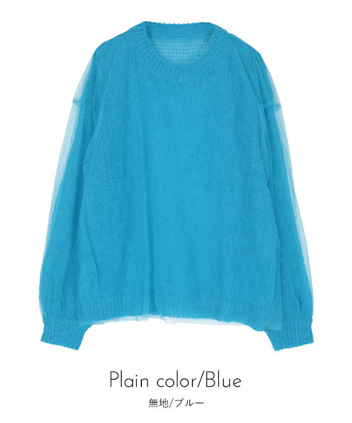 ・ローゲージニットにチュール素材がドッキングされたニット。