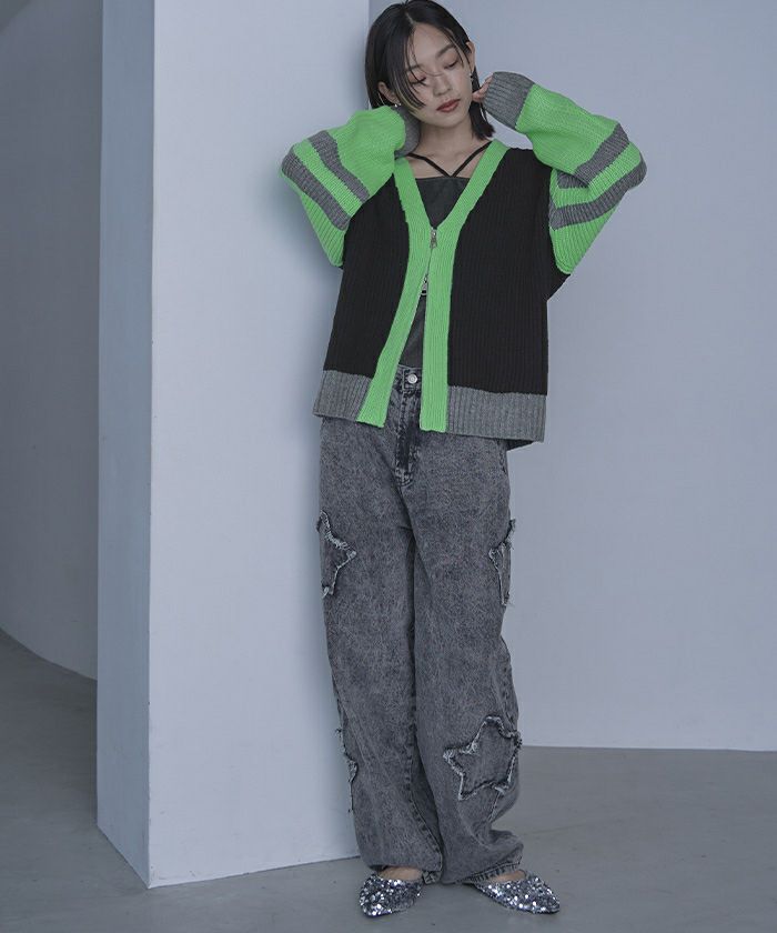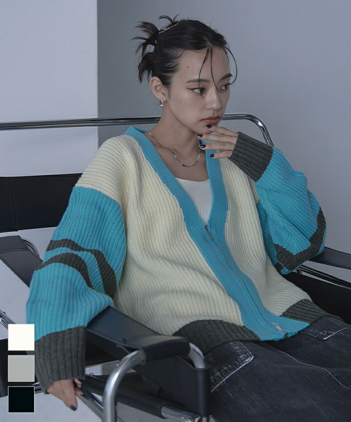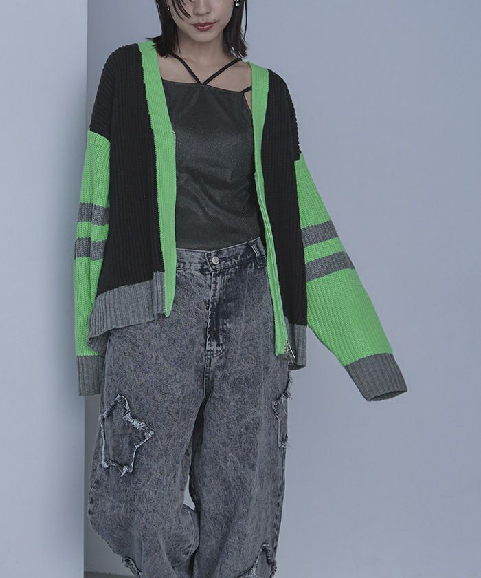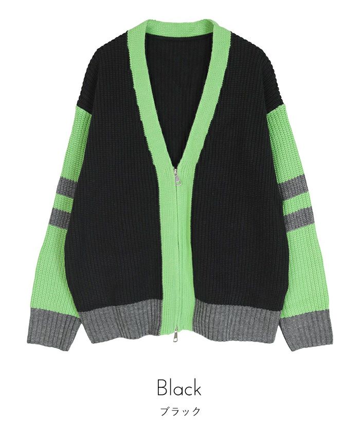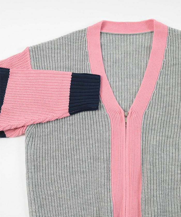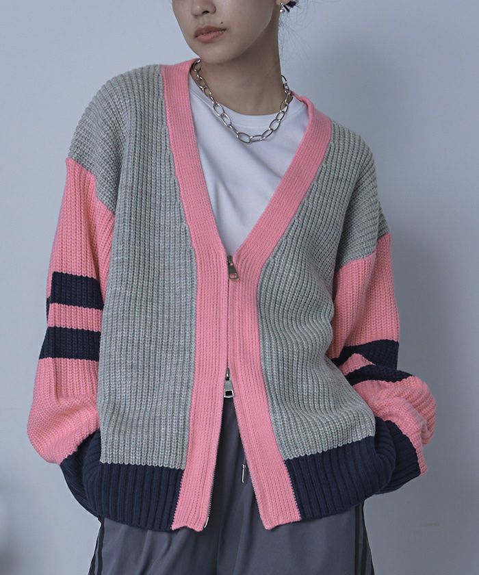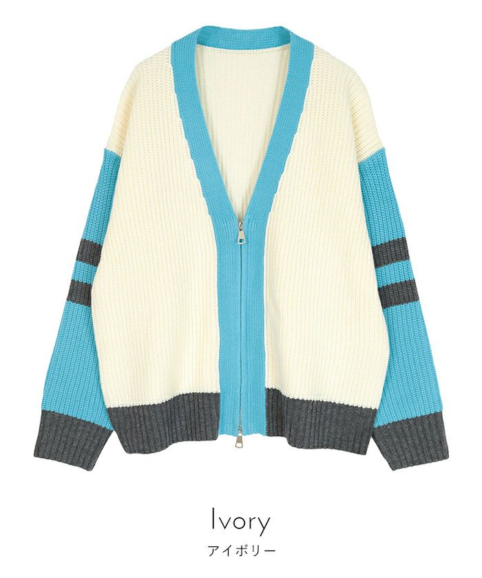 マルチカラージップVネックカーディガン