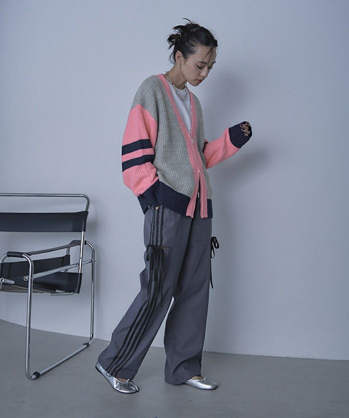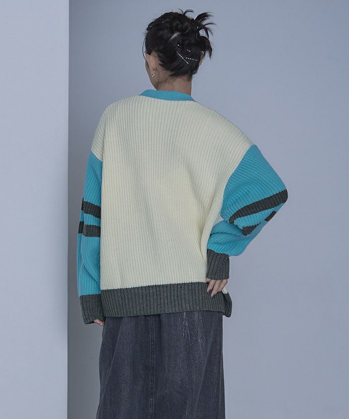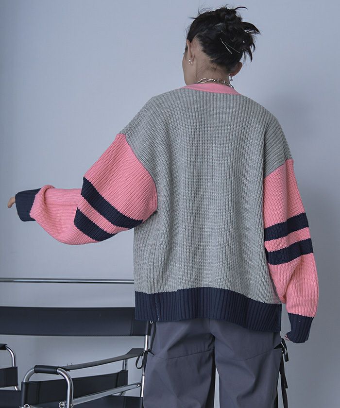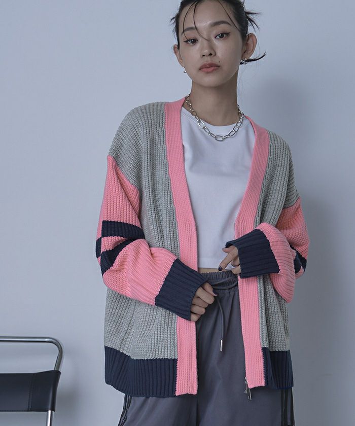 ・配色デザインがポイントのニットカーディガン