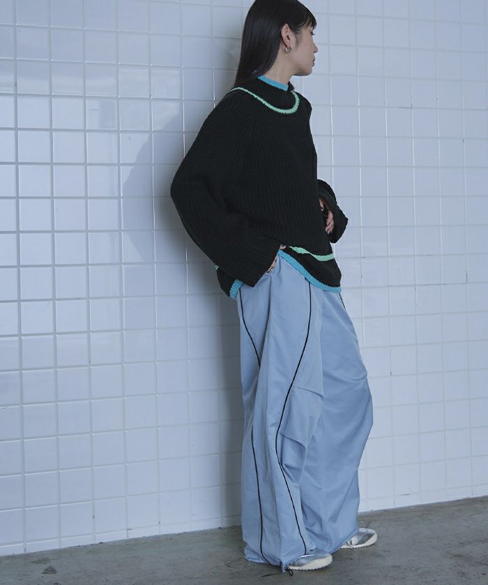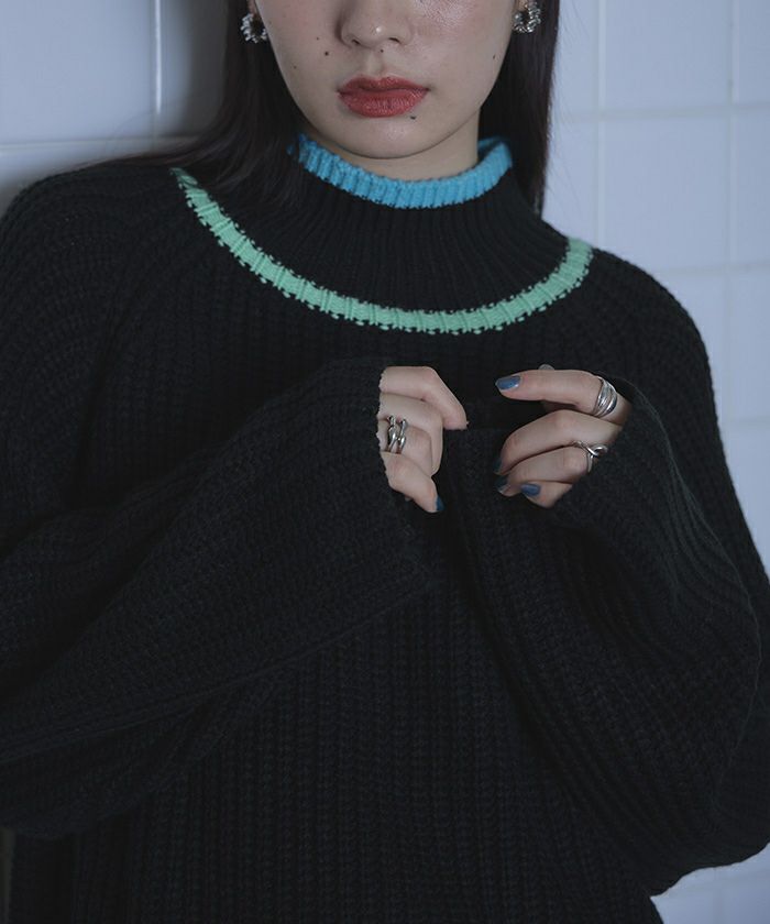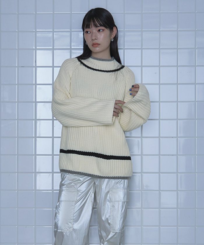 ・2色の配色ラインがポイントのニット。
