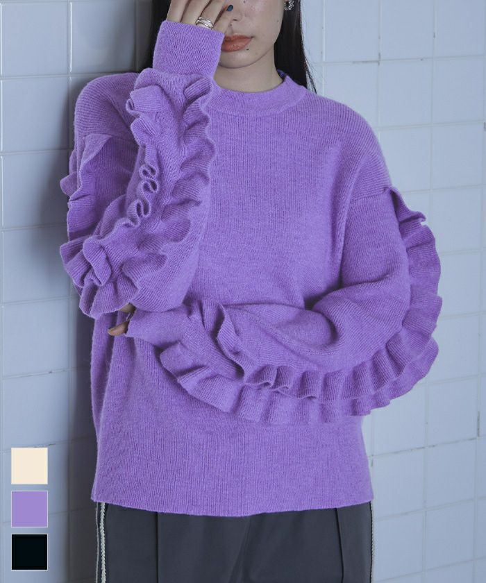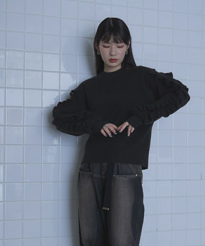 ・存在感のある袖のフリルがかわいいニット