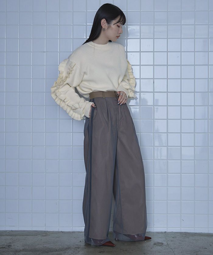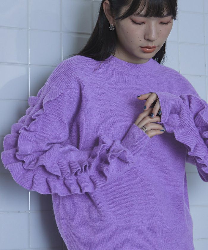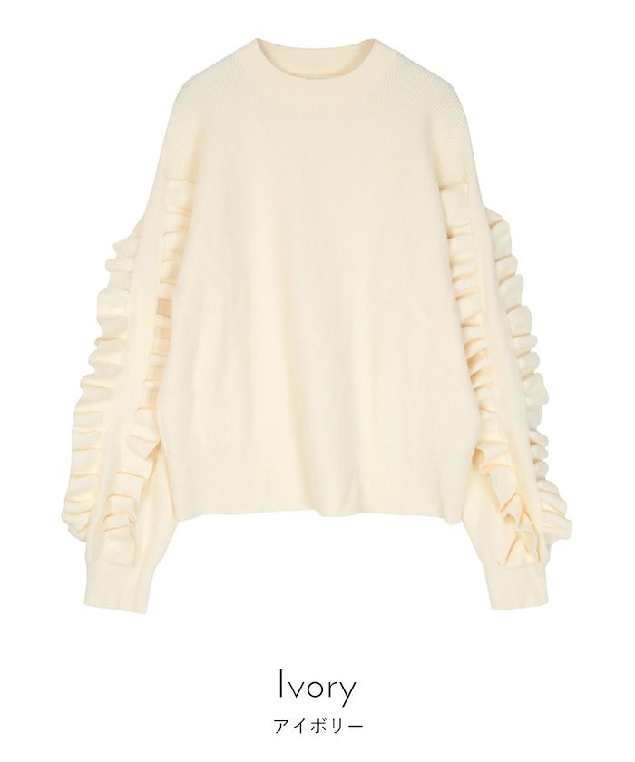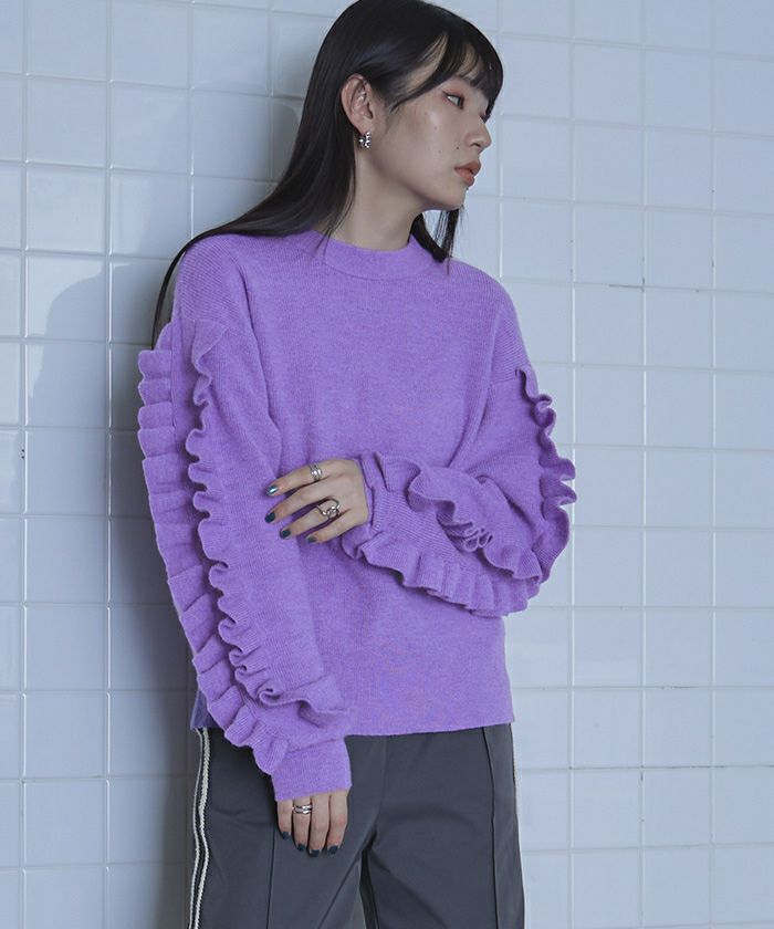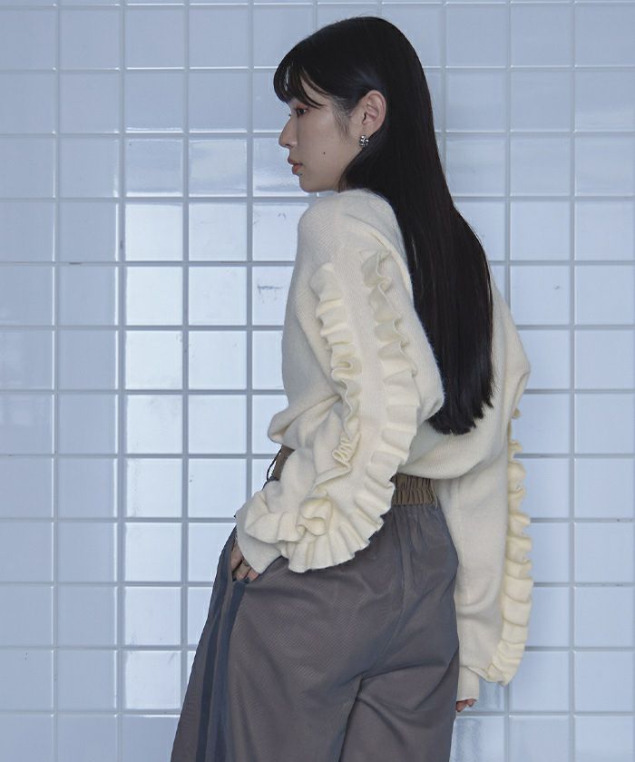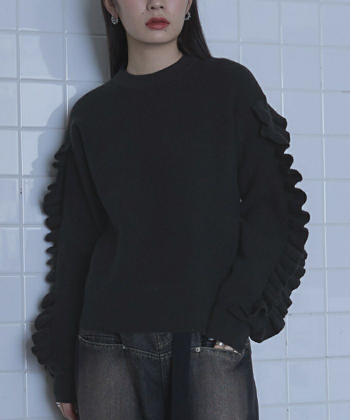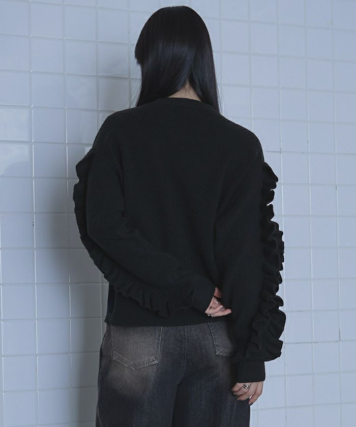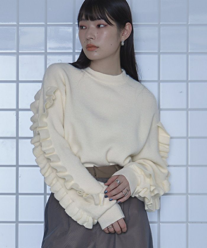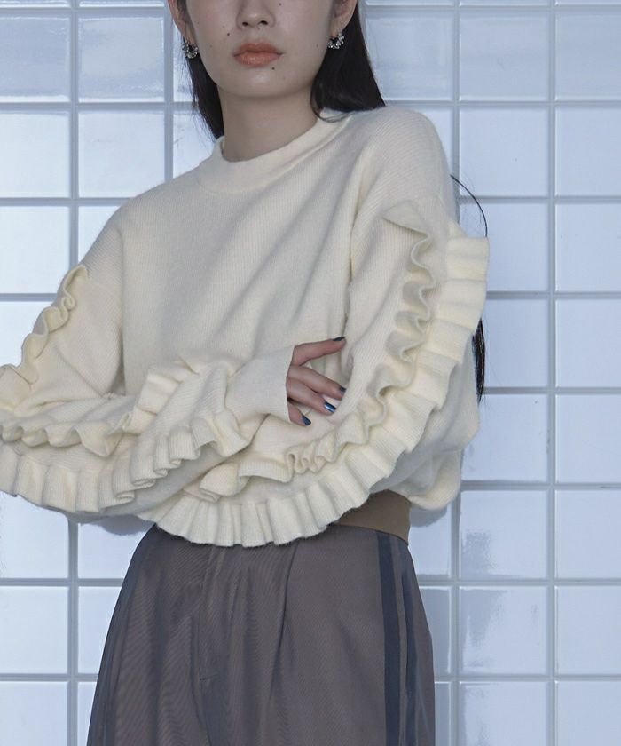 フリルスリーブニット