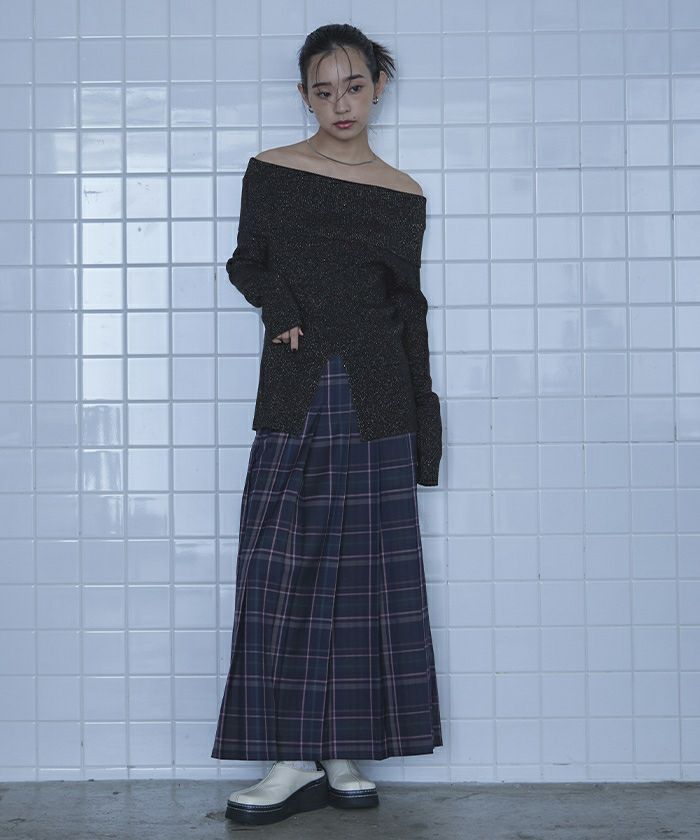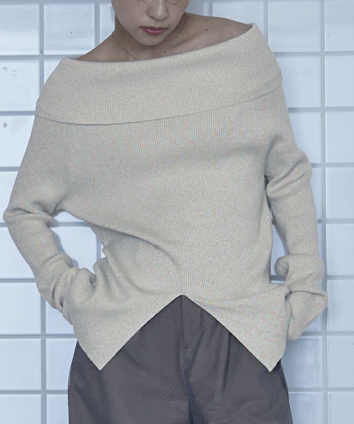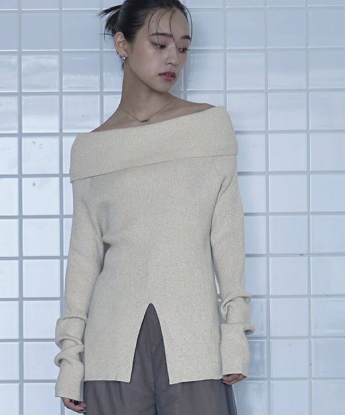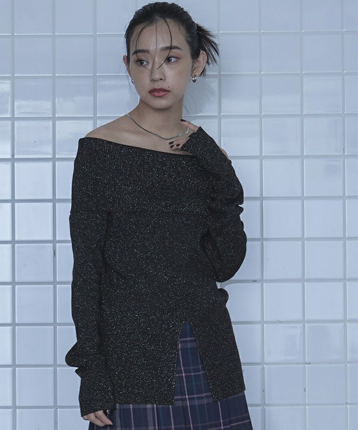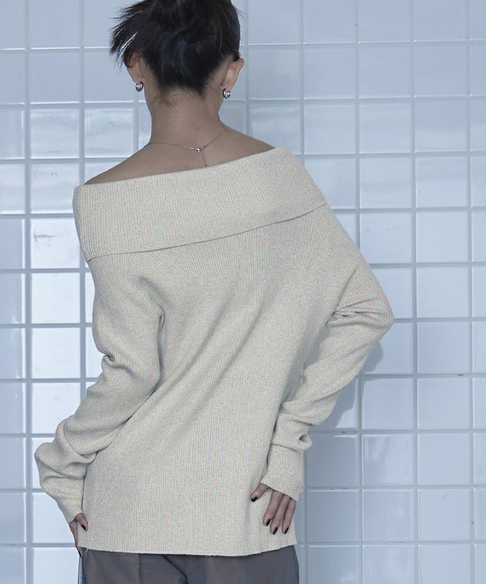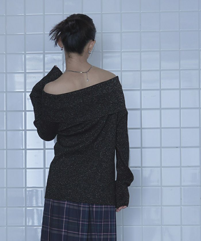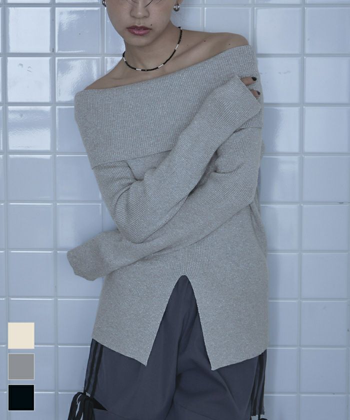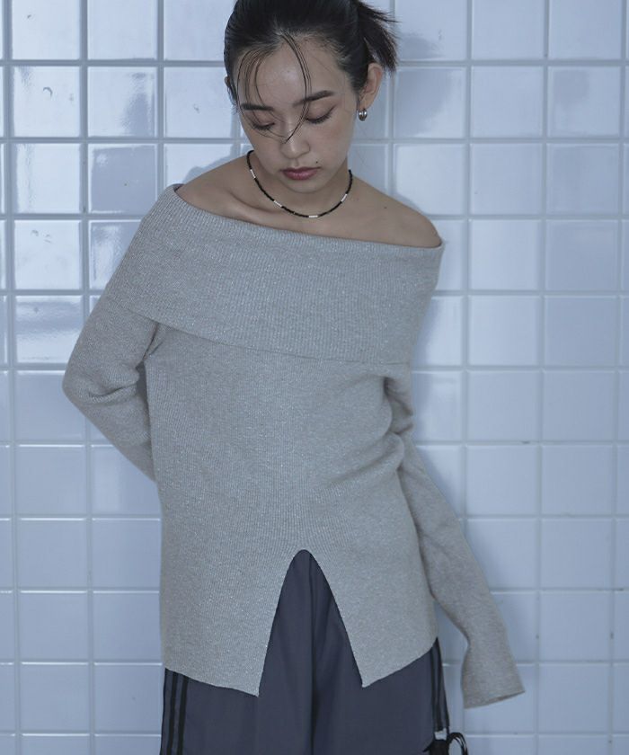 商品情報 ・ラメ感がポイントのオフショルリブニット
