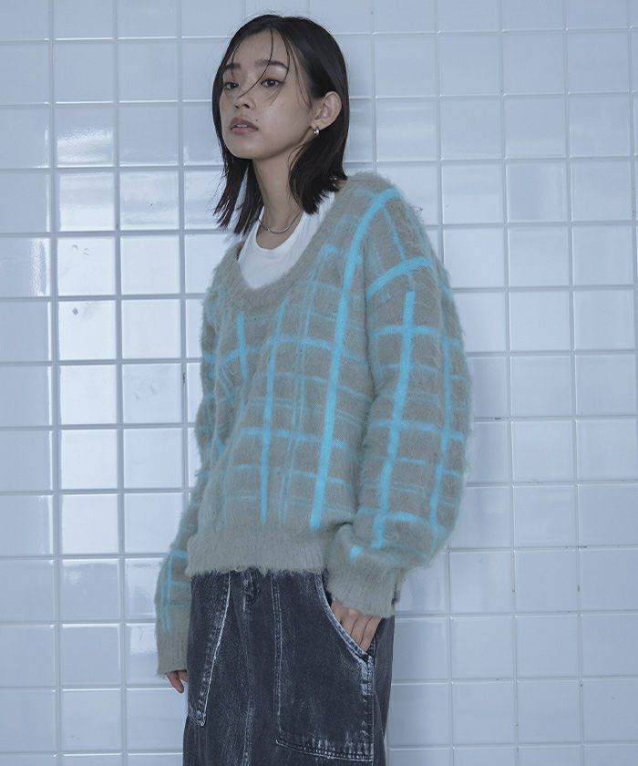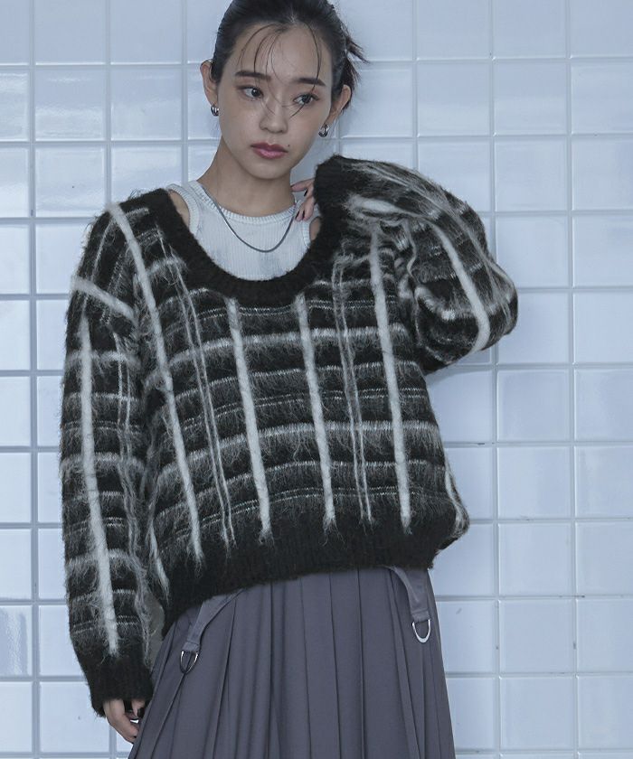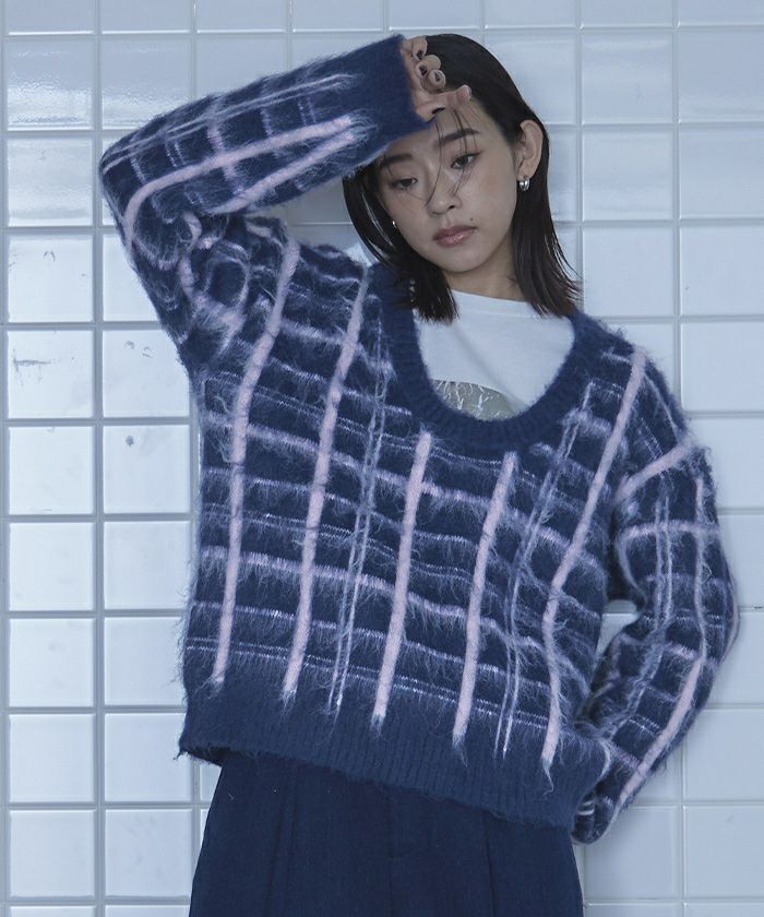 ・ふわっとした毛吹き感が特徴的なシャギーニット素材が魅力