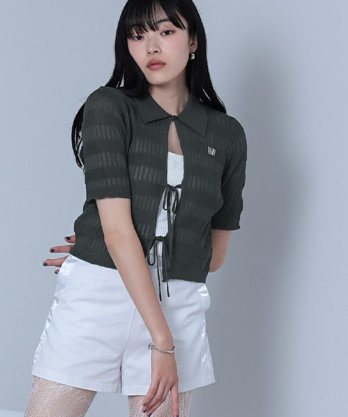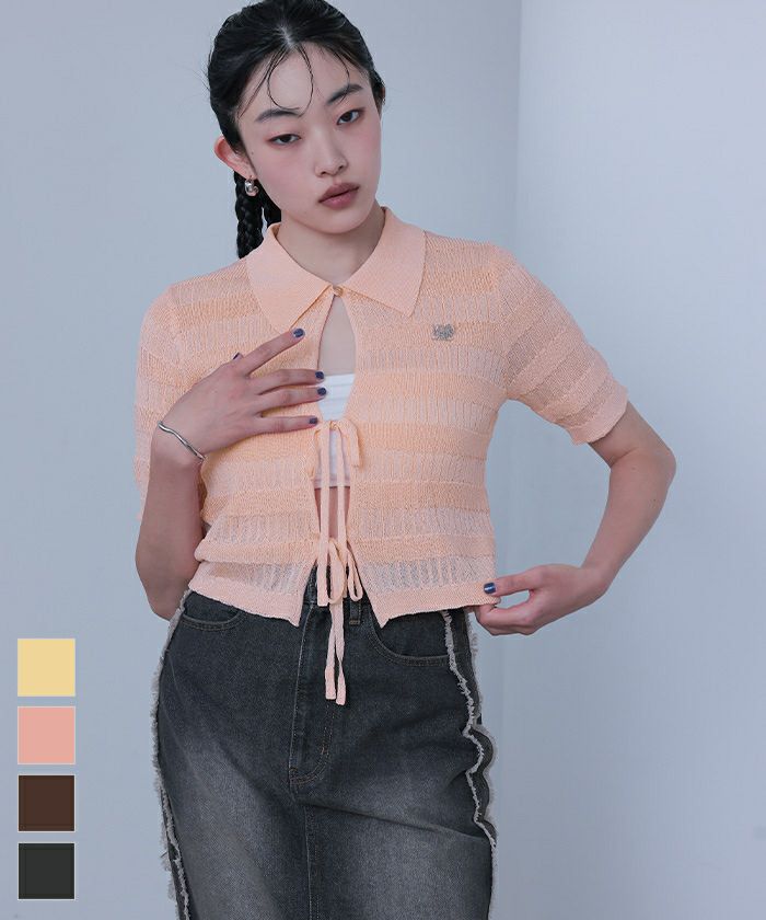 ・フロントリボンデザインでトレンド感のあるニットトップス