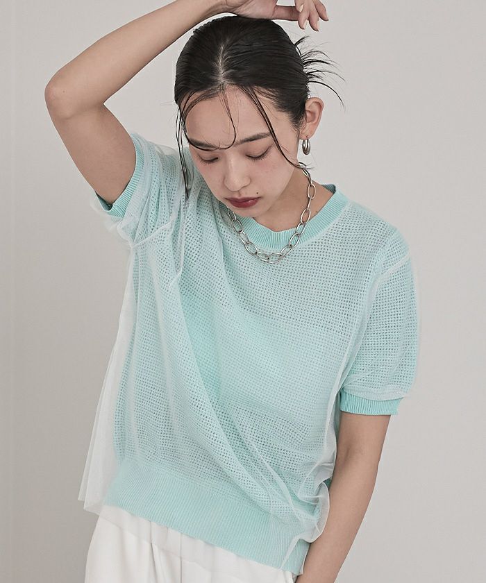 【期間限定★SALE】 チュールレイヤードメッシュトップス