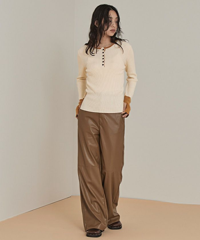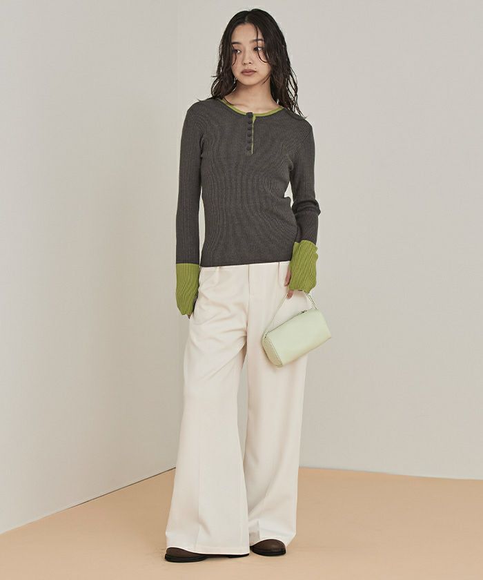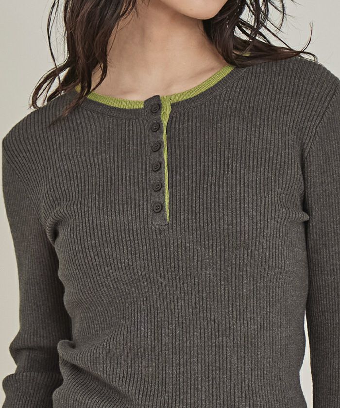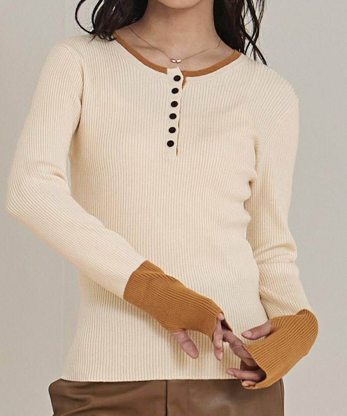 ハーフボタン配色リブニット