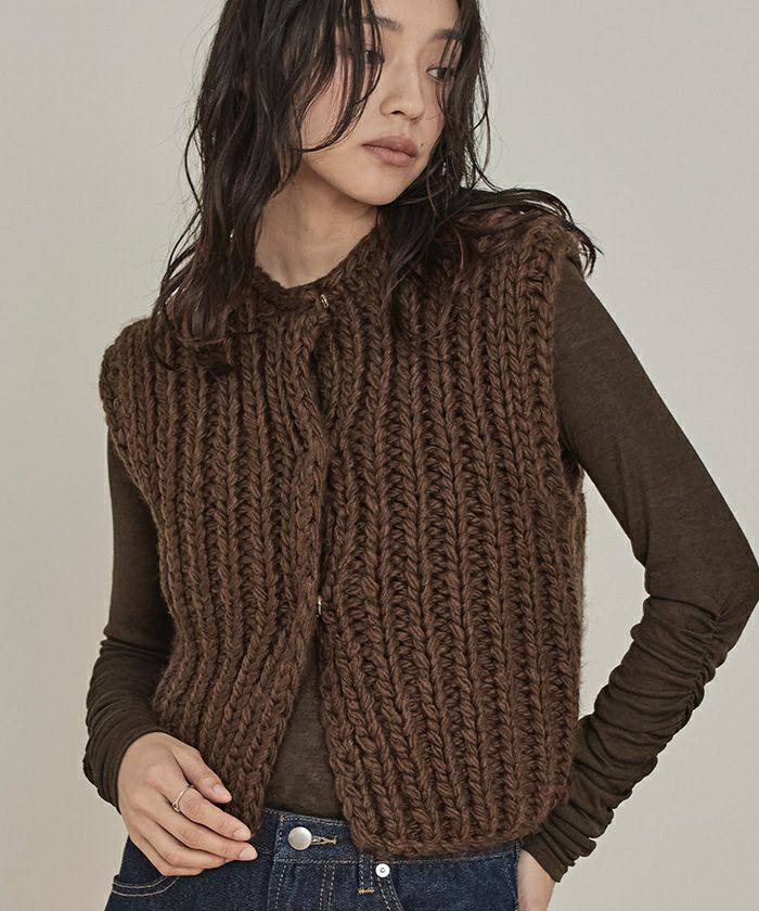 ・手編みならではのほっこりとした雰囲気が特徴のローゲージニット