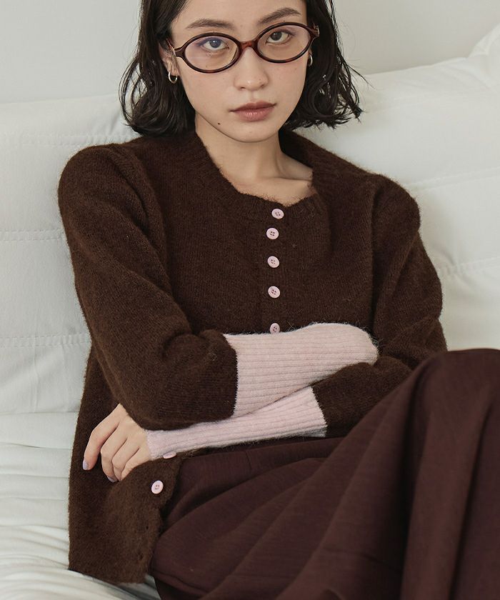 ・カラフルなボタンと袖口の配色が目を引くデザインカーディガン