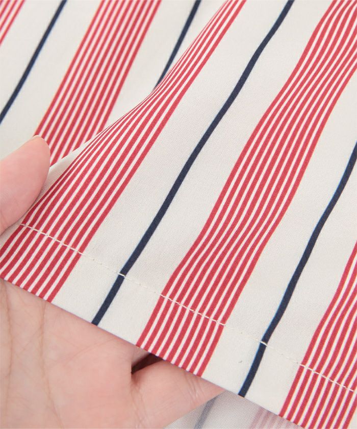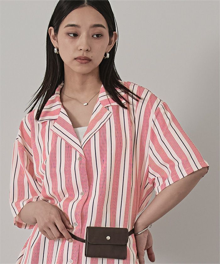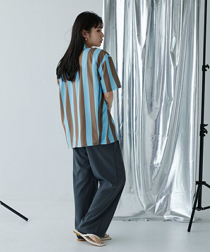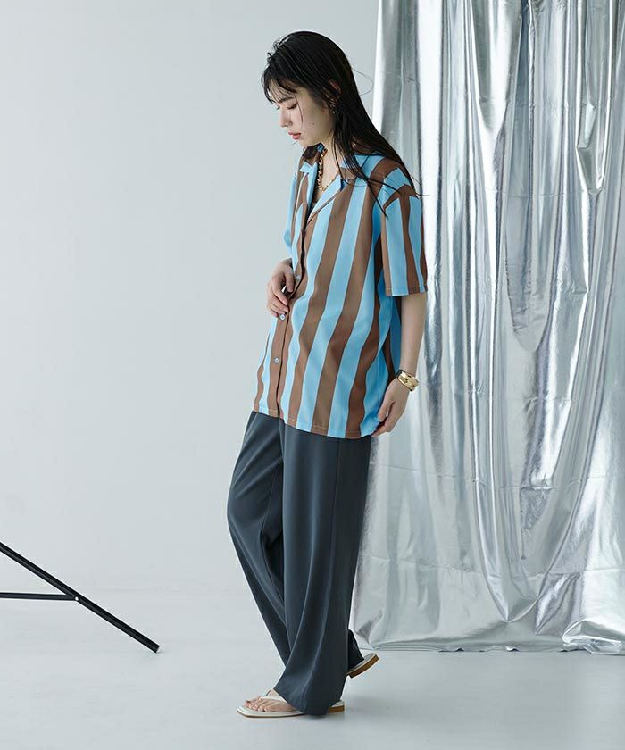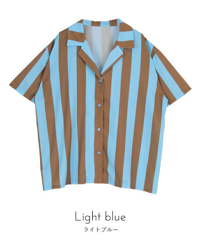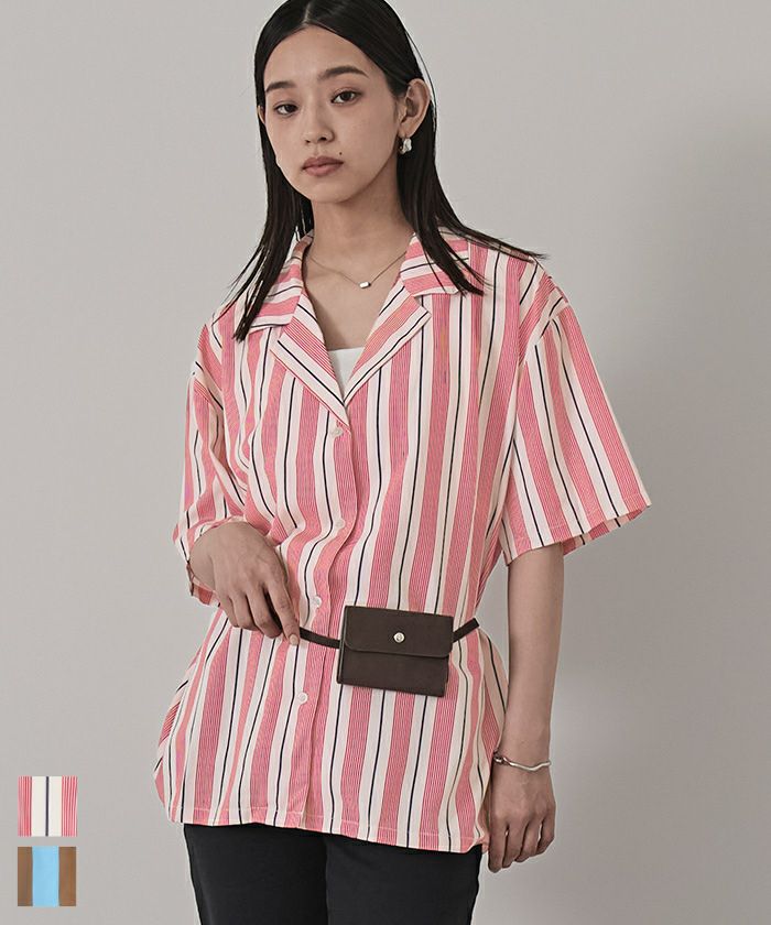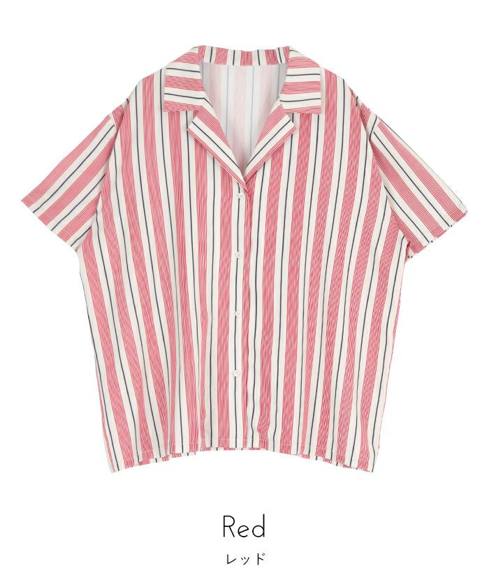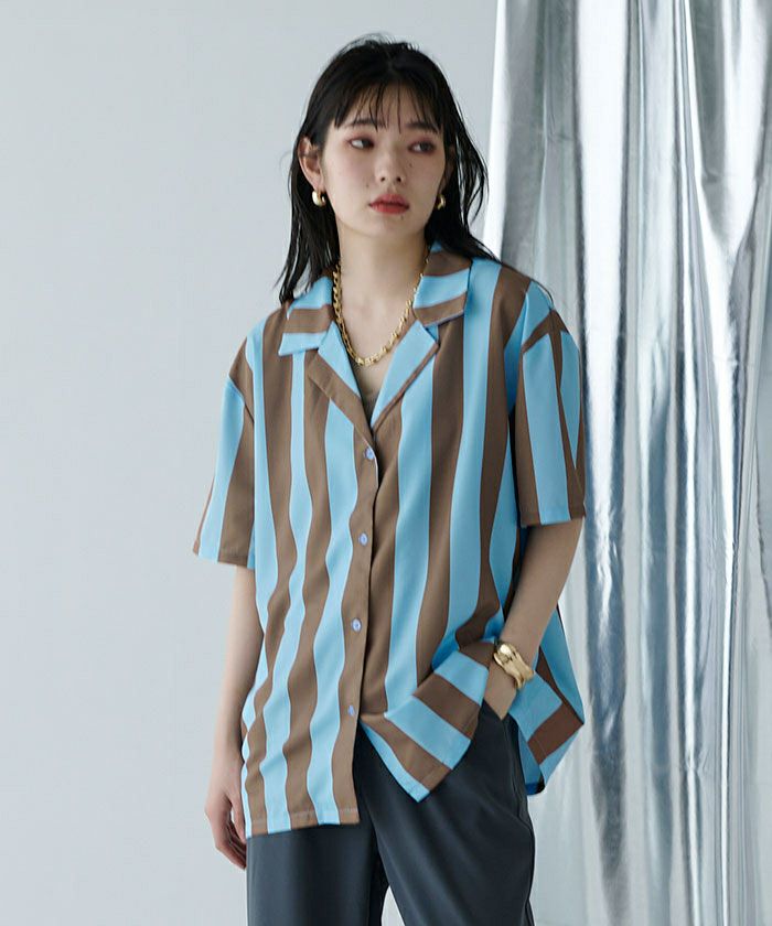 ストライプオーバーサイズ開襟シャツ〔メール便可/100〕