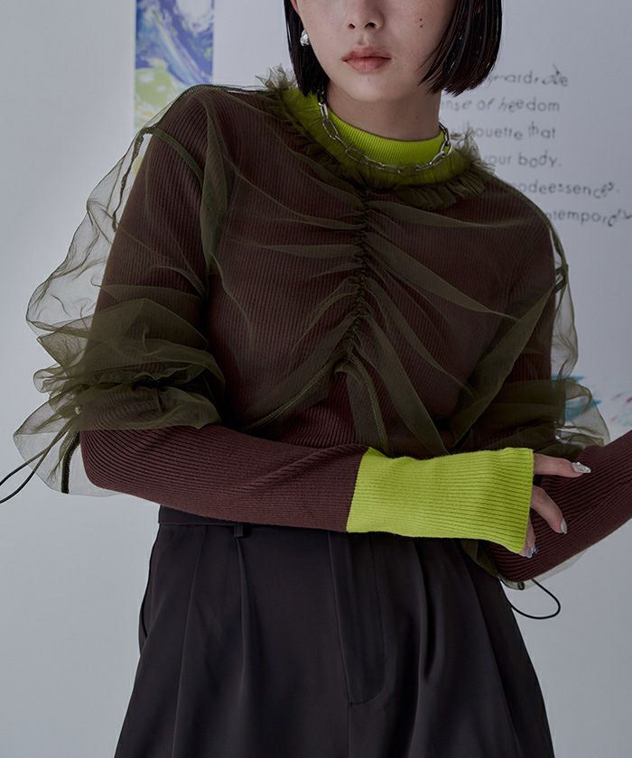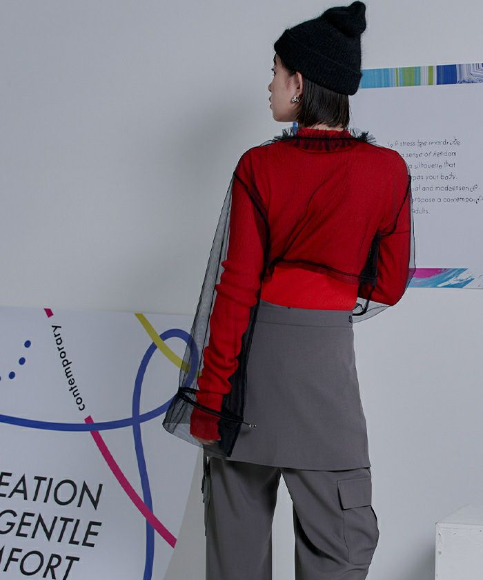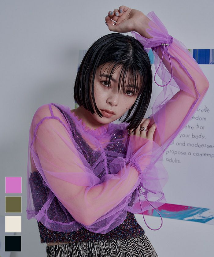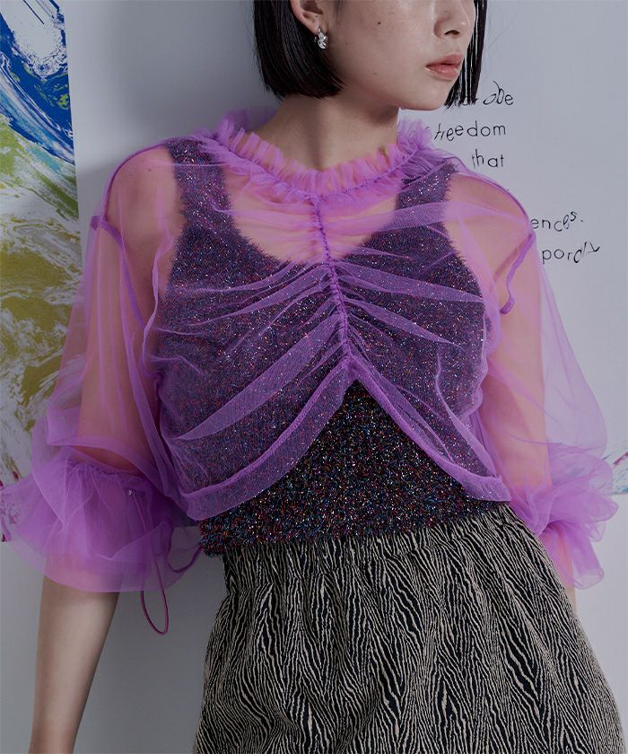 チュールギャザーシアーショートトップス〔メール便可/40〕