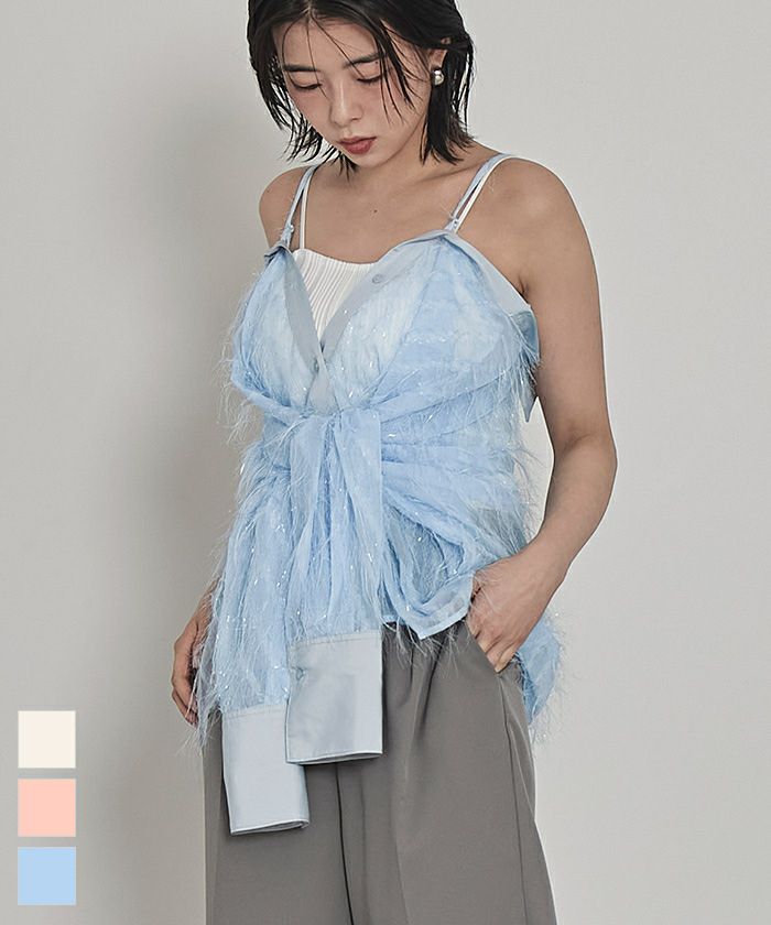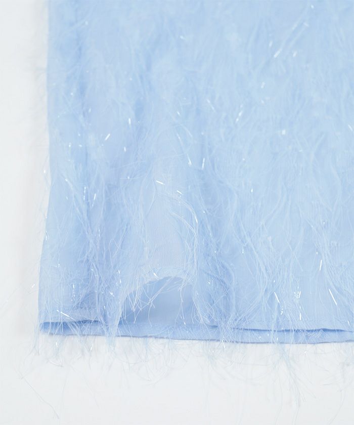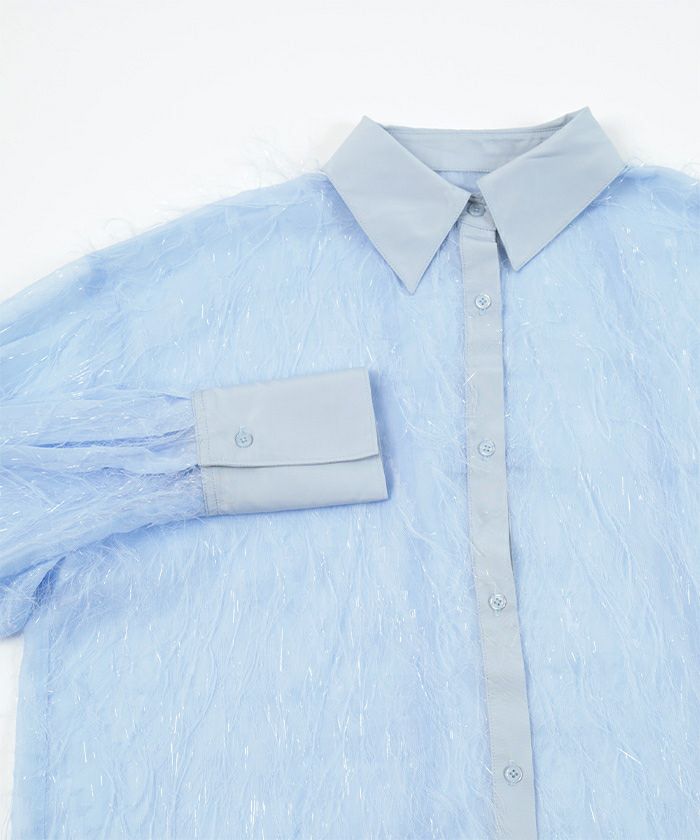 ・毛足の長いフリンジがかわいいシアーシャツ。